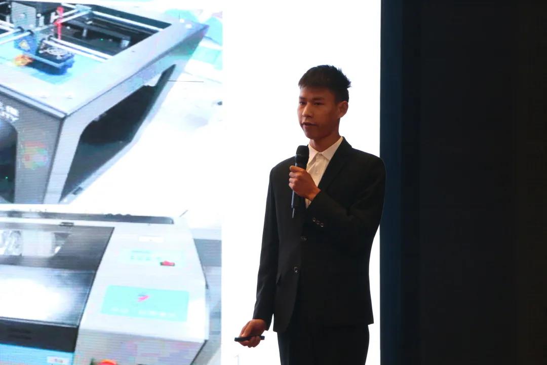 本次大赛共有十组选手参赛,他们依次上台通过答辩的方式,从作品的设计理念、制造过程和发展前景三个方面向评委老师和观众进行了详细讲解。评委老师在对同学们的动手能力及创新思维给予极大肯定的同时,也为每个参赛选手指出不足并提出了宝贵的改进意见。