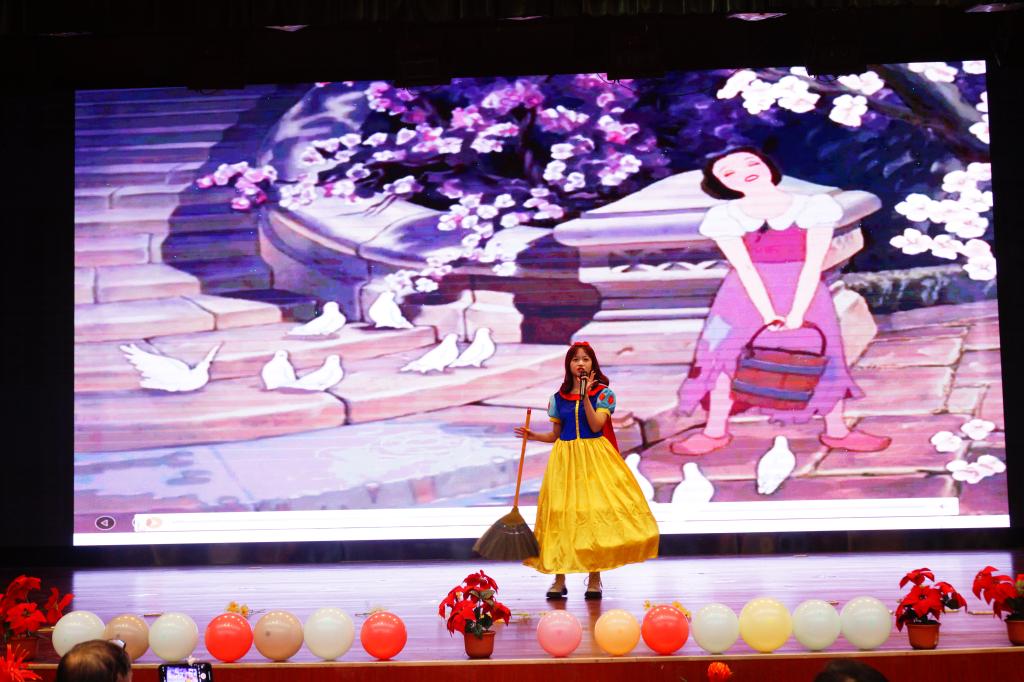 本次汇报演出共有十个节目,《后妈茶话会》动人的歌声回响在报告厅的每个角落,《死亡笔记》渲染了整个会场紧张又幽默的氛围,重现《甄嬛传》滴血认亲名场面,引得观众啼笑皆非,《爱乐之城》Sch和Mia优美的爱情故事让人向往,《白雪公主和七个小矮人》动作语言丰富,不禁让人想起童话的美好,你的童年我的童年好像都一样,《家有儿女》带你一秒穿越回童年时代,《疯狂动物城》里可爱的兔子警官朱迪人偶出现在舞台上时,迎来了整个晚会的高潮,当漂亮的蜘蛛精和唐僧相遇会发生怎样的化学反应呢,《错坠盘丝洞》带你现场体验,《皇帝的新装》演员们绞尽脑汁,为皇帝的新衣出谋划策,《魔女宅急便》的同学利用流利的口语,给大家展现了一个新奇的日剧。最终,经过激烈的角逐,本次演出英语2003班荣获特等奖,英语2002班和英语2101班获得一等奖!