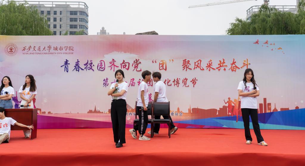 为推动校园文化建设、创造积极向上的校园文化氛围,彰显青春活力,更好地调动广大同学参与素质拓展的积极性与主动性、不断提高社团活动水平,学院团委于4月29日中午在喷泉广场举行“‘社’彩缤纷齐绽放,‘团’聚青春共奋斗”第十一届社团文化博览节开幕式。出席本次开幕式的有学院团委书记茹静、学院团委全体指导老师、各系团工委书记及社团指导老师。开幕式由刘增晨、贾欣悦同学主持。第十一届社团文化博览节开幕式在舞蹈团青春活力的开场舞《Don't be shy》中拉开帷幕。
