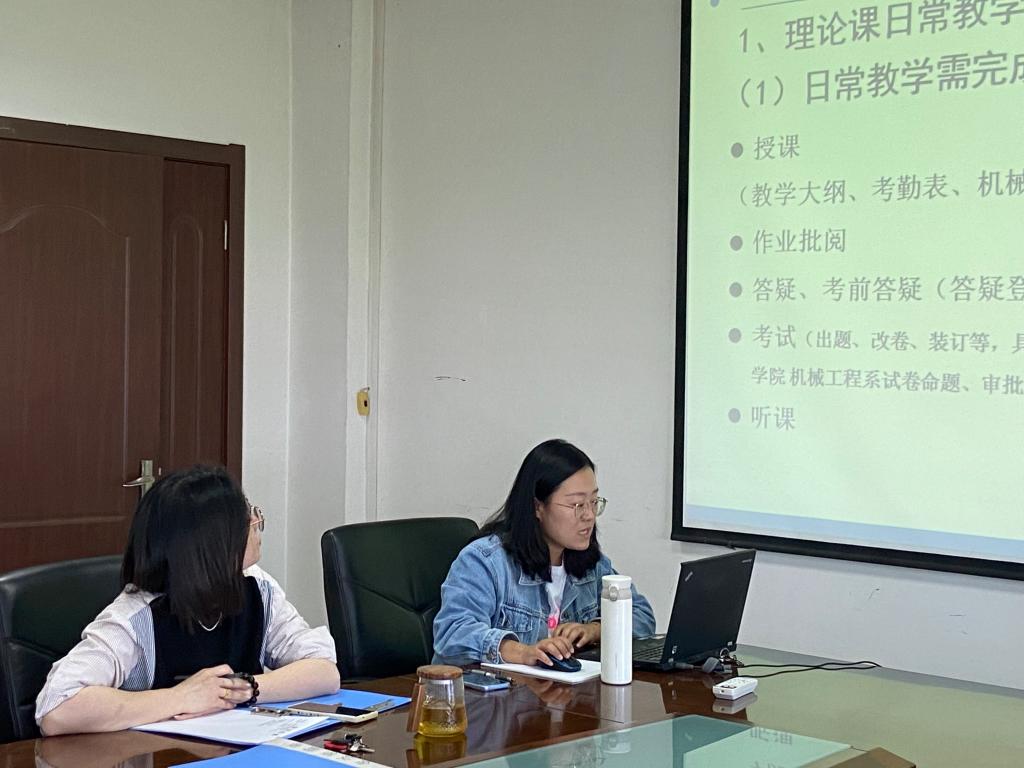 会议第一阶段,机械系中期检查情况通报。主任助理门静汇报了本学期理论课日常教学、大面积课程教学以及三证的相关情况,将机械系各年级成效数据进行对比和分析。并对学院及系里督导检查情况的反馈进行通报,指出检查存在的共性问题,同时具体部署近期工作安排,希望全系授课教师、班主任齐抓教风、促学风,加强教学过程管理,采取有效方法提高教学质量,着力提升机械系学生在课堂教学、三证等方面的学习效果。