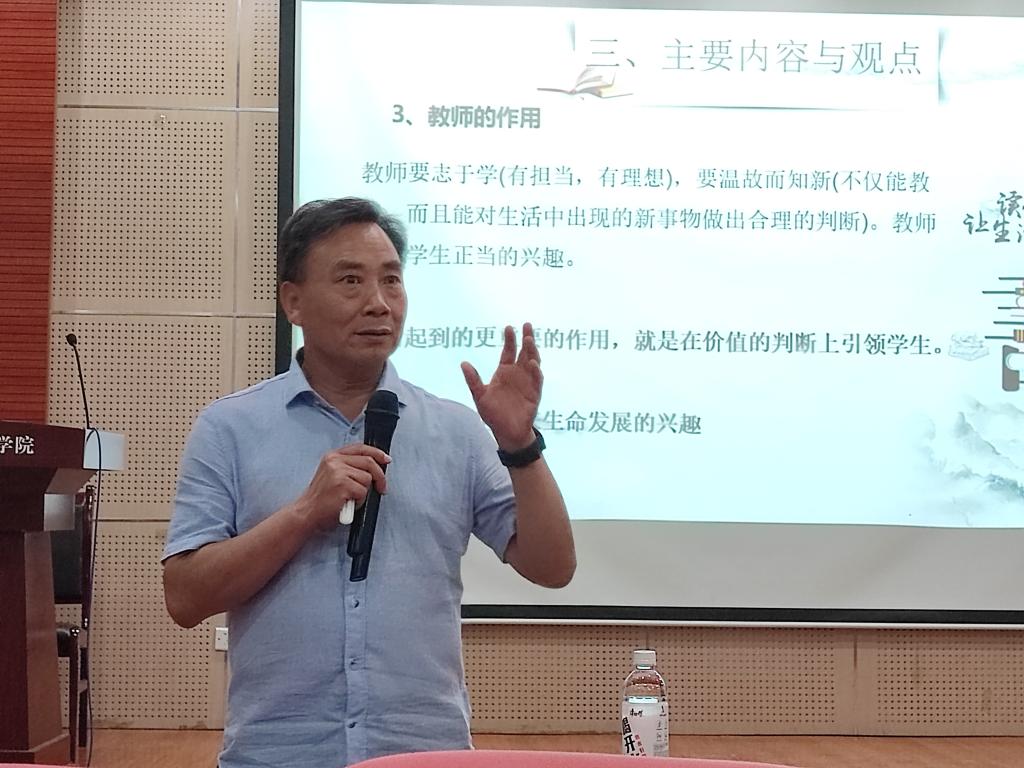 学生服务中心主任张学堂分享了《好的教育》一书读书体会,书中在《论语》《孟子》等传统经典中找到了教育的本质。张老师谈到,教育的本质是立德树人,我们要重新认识和理解“以学生为中心”的理念,既要重视知识传授与技能教育,更要重视唤醒学生的生命力,引领学生提升价值判断力和审美鉴赏力,使其成为有理想、有道德、有文化、有纪律的高素质人才。