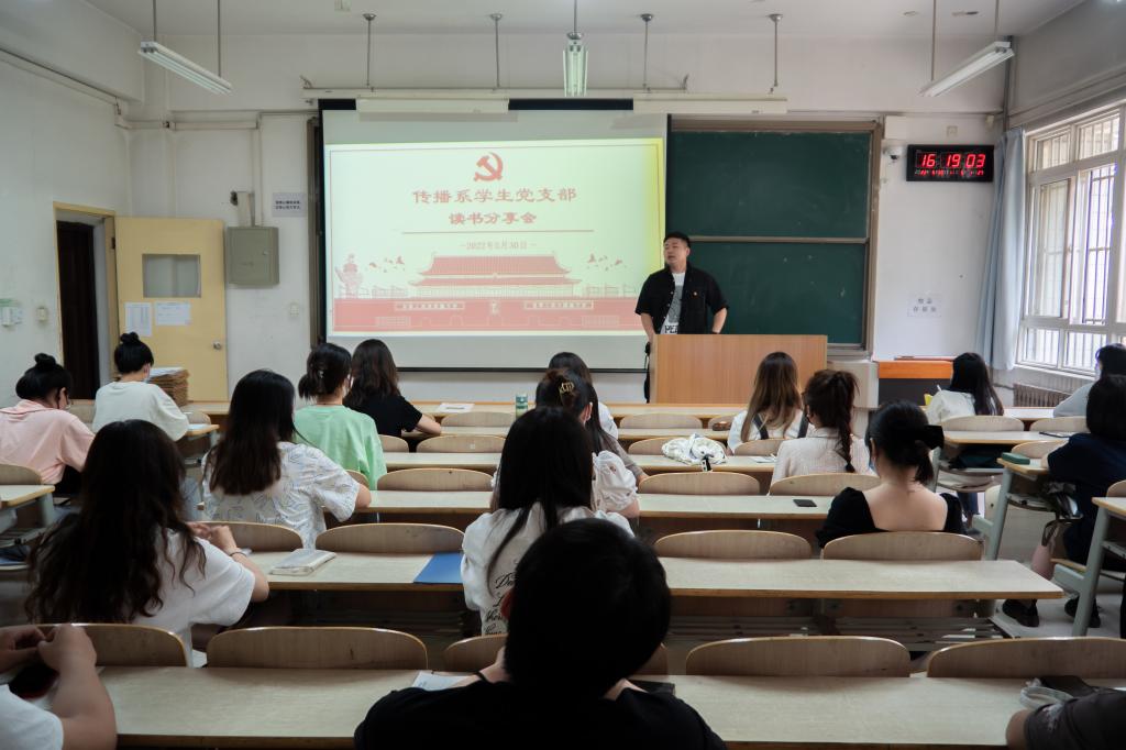 5月30日,传播系学生党支部于教学楼D109举办读书分享会。传播系学生党支部书记杨耀聪、辅导员任瑾以及全体学生党员参加此次读书分享会。