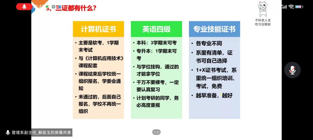 为让2022级新生进一步了解所学专业,明确奋斗目标,做好大学生涯规划,西安交通大学城市学院管理系于9月21日晚开展了有关“新生培养方案”的线上讲座。本次讲座由管理系团工委书记吴江菊老师主持,管理系副主任解茹玉老师主讲,管理系2022级全体新生参加了讲座。