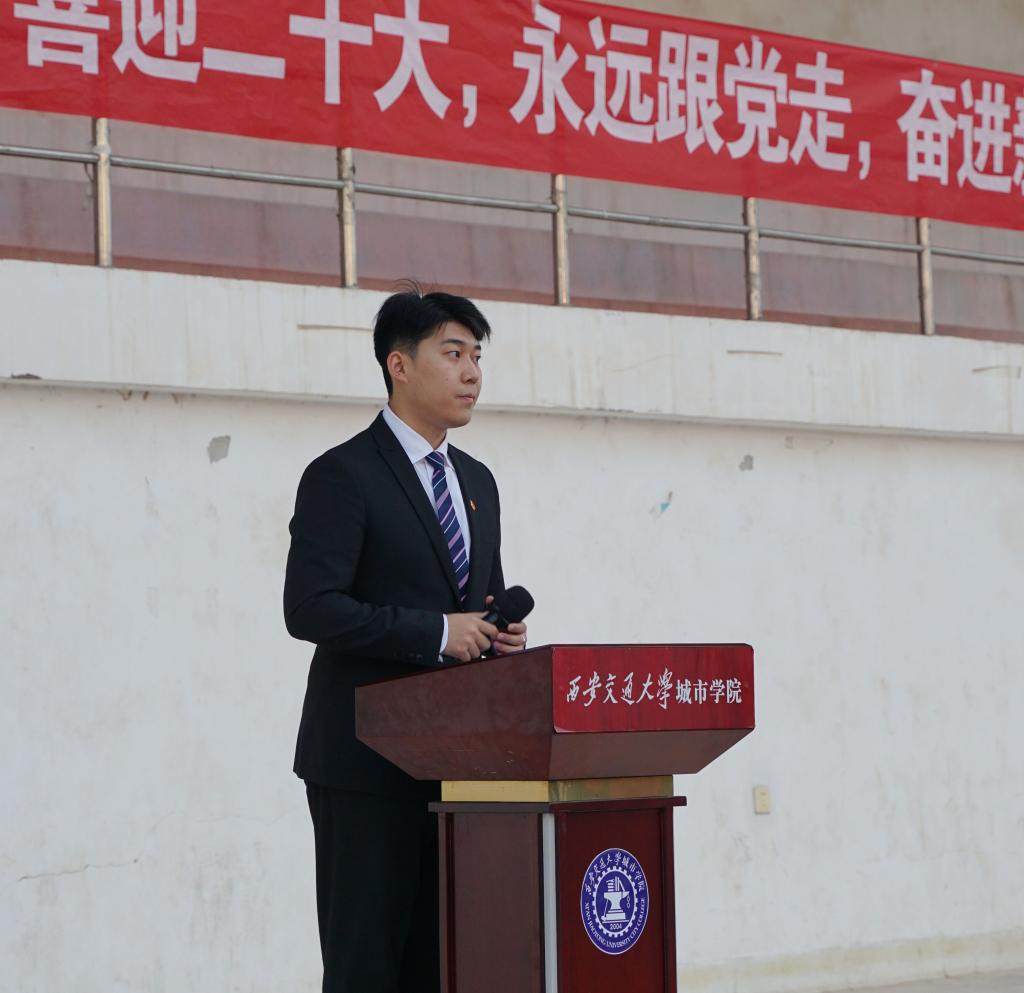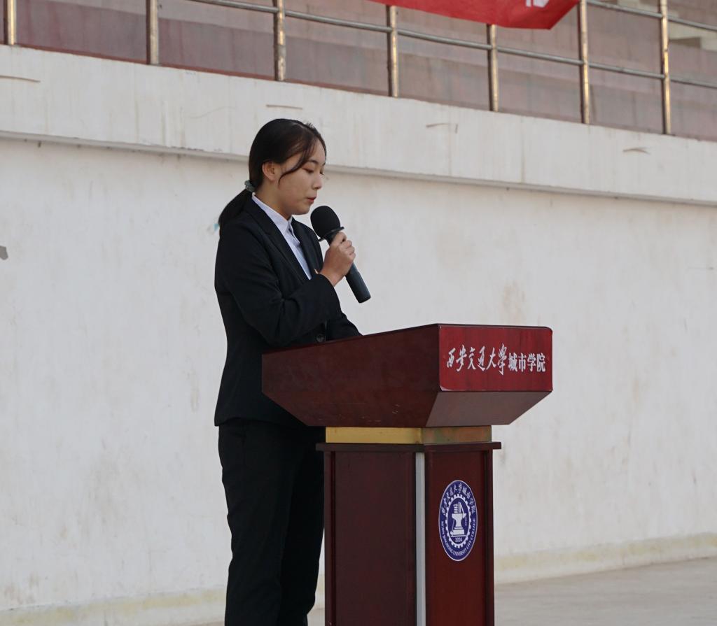 升旗礼毕,新生学生干部代表田梦婷同学和团学组织学生干部曾一丹同学相继发言。田同学以“新时代,新征程”为题,表达了对先辈们浴血奋战建立新中国的敬仰之情,并在鲜血染红的国旗下许下积极进取的青春承诺。曾同学倡议团学组织全体学生干部时刻牢记“尚德笃学,守正创新”的校训,坚持“从同学中来,到同学中去”的工作思路,高扬理想的风帆,焕发青春的激情,以满满的热情书写属于城院青年的新时代绚丽华章。