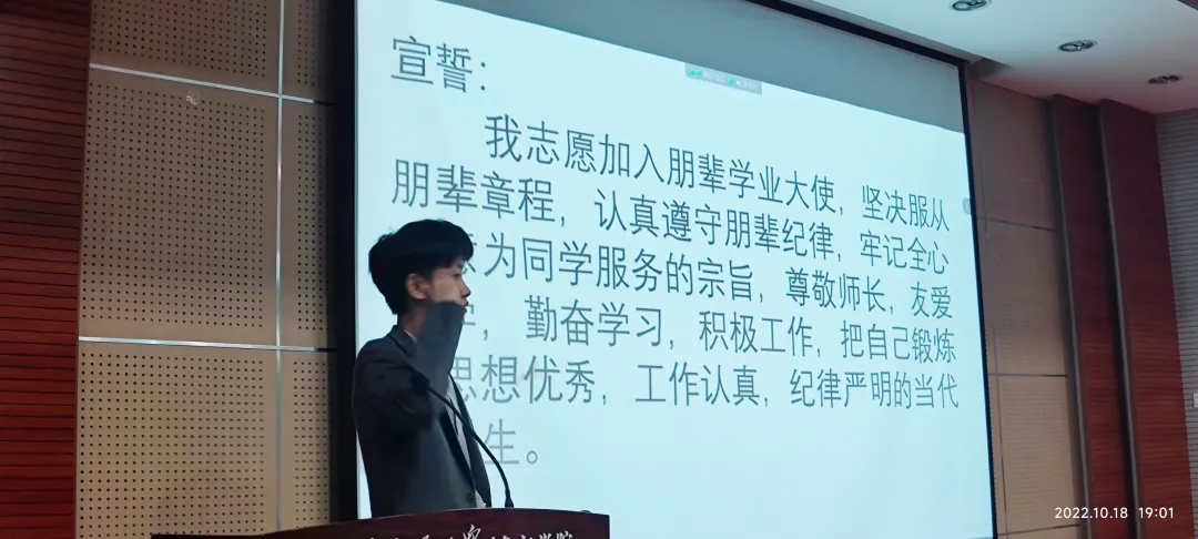 袁云瑞同学进行了述职总结,四位大使代表分别结合高数、英语、护理、制图等课程,进行了宣讲,姚敏老师向大家介绍了我院学业大使的整体情况。本学年,我院共聘任朋辈学业大使50余人,将在8个系开展学业辅导工作,预计覆盖学生2000余人。随后,新聘朋辈学业大使进行了宣誓,姚敏老师为新聘大使们颁发了证书,并强调学业大使要坚持问题导向,守正创新,努力做到服务至上。