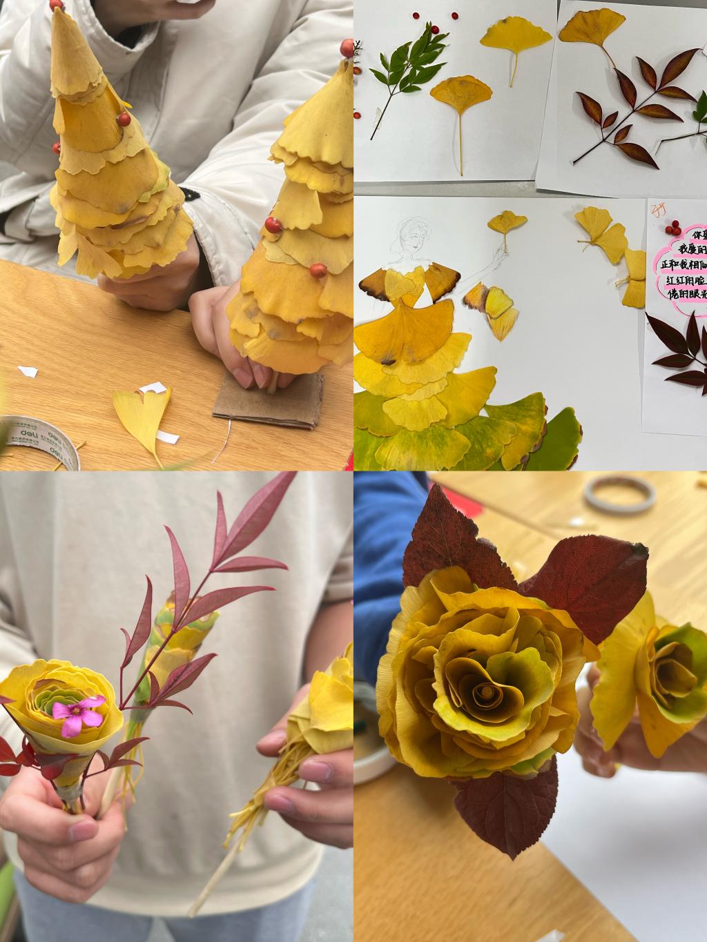 学院学生会在大学生活动中心楼下设立帐篷、桌椅,并召集工作人员收集校园内各样落叶,充分做好了前期准备工作,活动刚开始,同学们便纷纷加入到了作画的队伍中来,蝴蝶、玫瑰花、圣诞树......一片片树叶,在心灵手巧的同学们手中呈现出不一样的美,此外,本次活动还吸引到了一批特殊的参与者——校园里的小朋友们,他们发挥着自己的想象力,在哥哥姐姐们的帮助下,创作出一幅幅满怀童趣的作品。为此次活动,带来了别样的韵味。