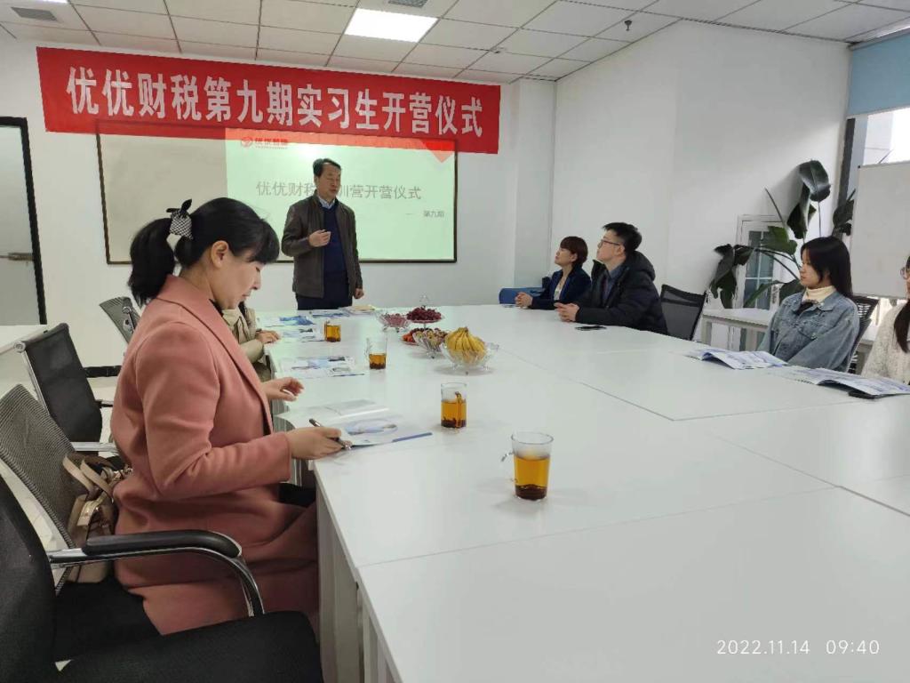 在实习生开营仪式中,优优财税事业部高级经理刘文选介绍了企业的基本情况、实习生培养成长体系、以及职业成长前景。郭关科常务副主任向企方介绍了城市学院的文化底蕴、发展历史以及管理系专业建设、人才培养情况等。同时,希望新入职的五位同学珍惜学院和公司提供的平台,多学习,多请教,个人专业素养和提高工作能力。最后,优优财税创始人CEO马建林女士充分肯定了我校实习生的整体素养高,学习能力强,并寄语实习生积极学习和改变,不断适应社会环境和企业需求。