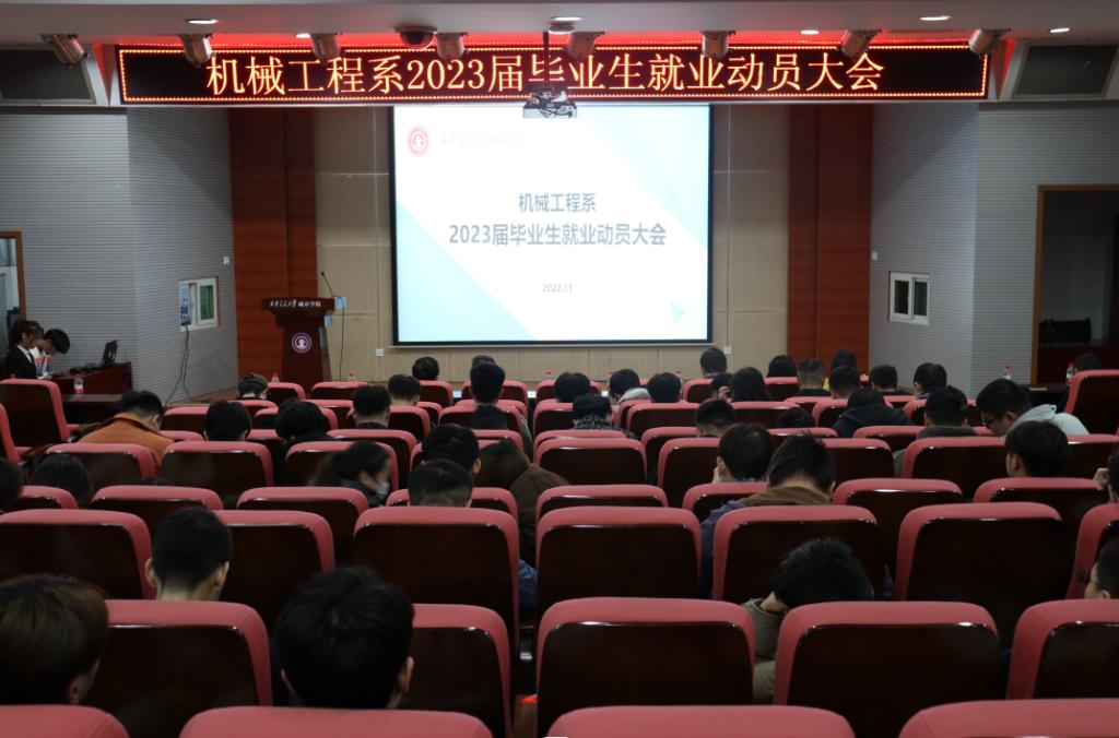为进一步推进机械工程系的毕业生就业工作,机械工程系于2022年11月14日在F100报告厅召开了机械工程系2023届毕业生就业动员大会。出席本次会议的有西安交通大学城市学院院长助理张学堂,机械工程系主任刘吉轩,副主任王国平,教工支部书记李娜娜,主任助理门静,以及全体毕业班班主任老师。会议由机械工程系主任助理吴昊翔主持。