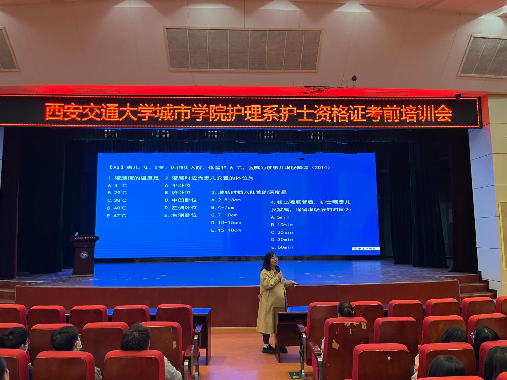 为了帮助护理系学生更有针对性地复习备考,提高护理系学子护士执业资格证的通过率,提升学生就业质量,学院教师赵晓文在3月17日于教二报告厅,采用线上线下同步的方式为学生们上了一堂生动的护士执业资格证考试考前培训讲座。