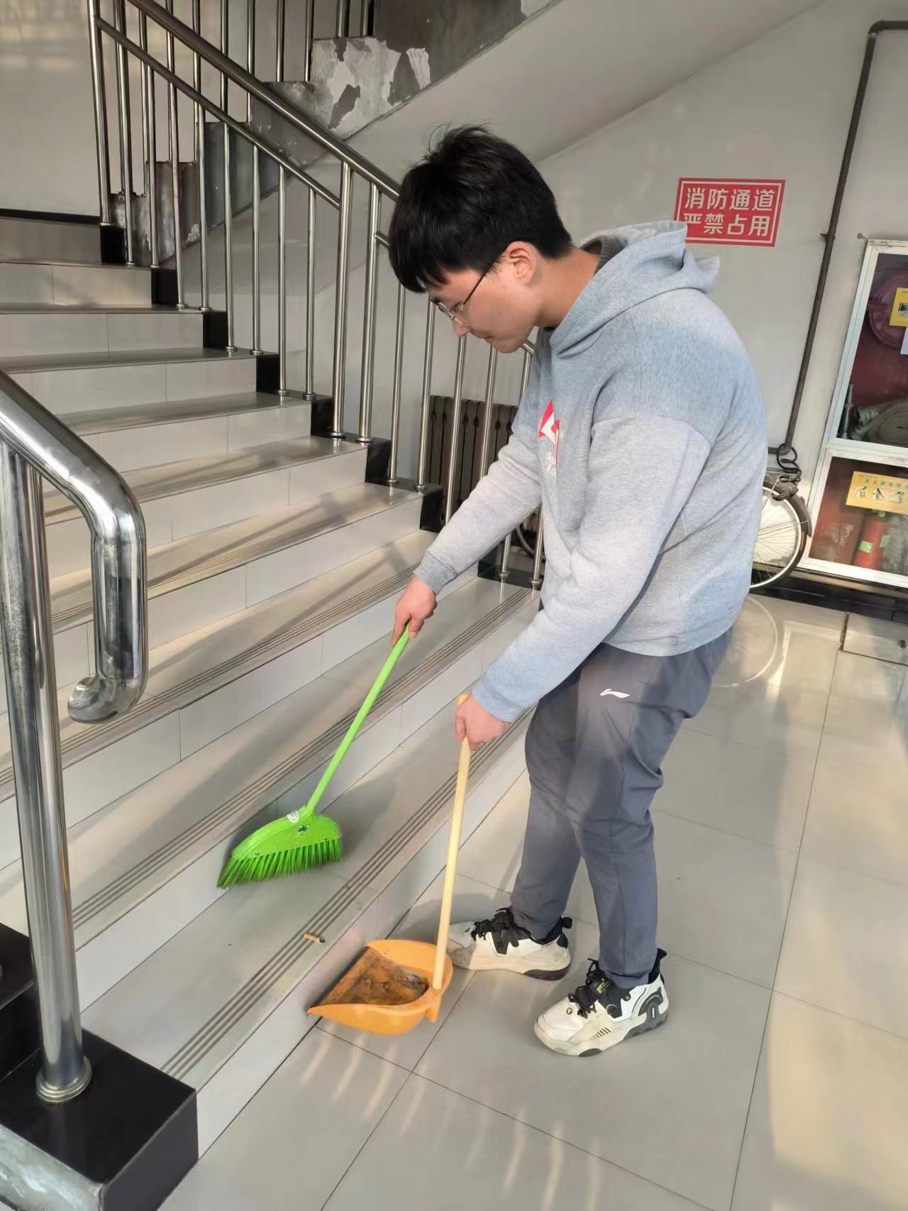 3月20日-3月29日,大一年级各班学生在班长、生活委员的带领下在教学楼、公寓楼、田径场、校园道路等公共区域内,进行了集中打扫、捡拾垃圾。清扫环节分工合理,大家干劲十足、团结一致,成为校园里一道靓丽的风景线,并用实际行动引领广大同学积极参与到校园清扫服务中。通过亲力亲为的劳动锻炼,不仅美化了校园环境,还促进学生形成勤俭节约、踏实肯干、团结协作的优良品质。