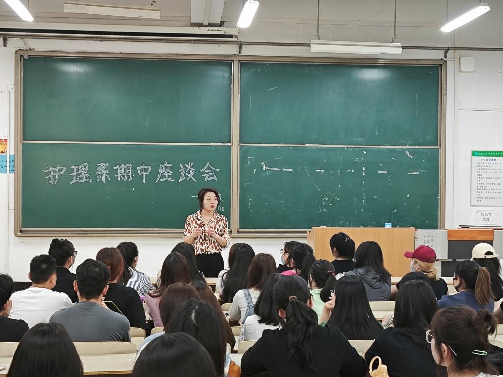 为进一步了解学生在学习、生活等方面的情况,加强教师与学生之间的沟通交流,有效解决课堂教学及班级管理中存在的问题和不足,为今后更好地开展教育教学工作打下坚实的基础,护理系学工办于4月19日组织本系学生进行期中座谈会。本次会议由护理系学生工作主管王娇丹主持,参加座谈的有护理系学工办全体辅导员老师,以及各班级学生代表。