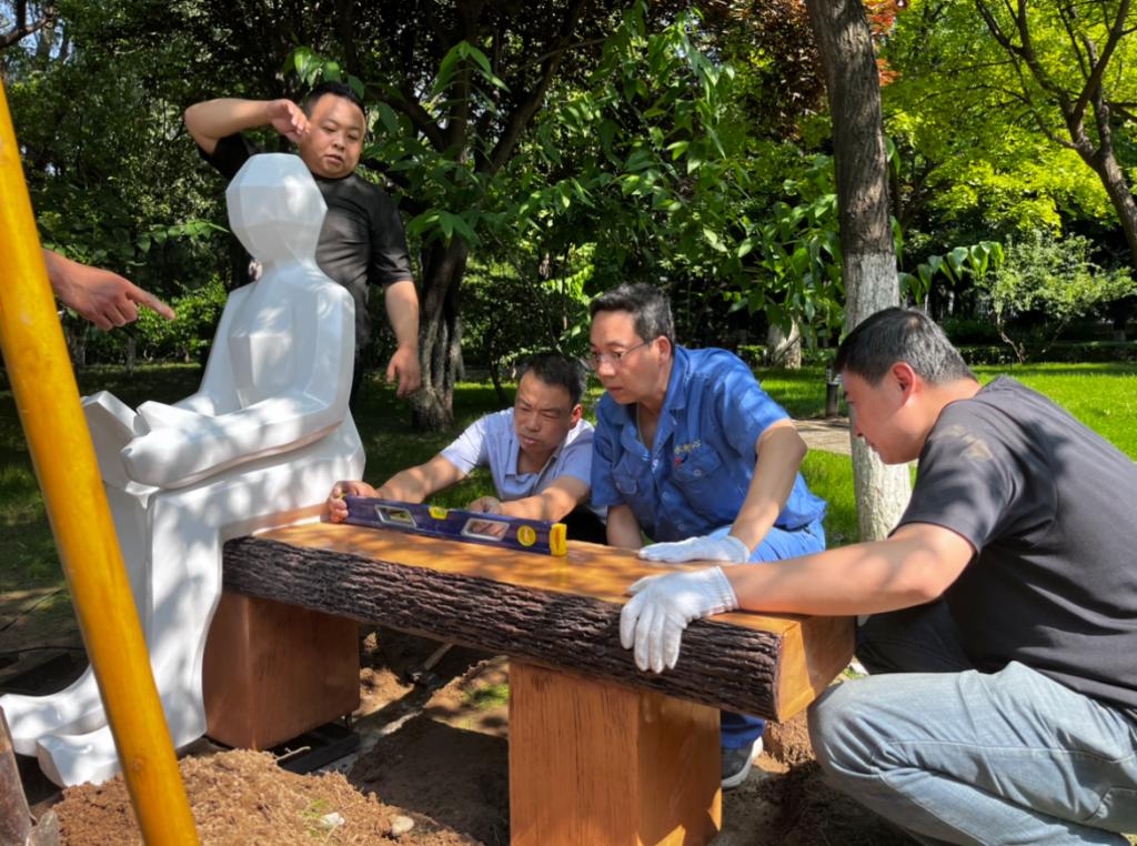近日,条保部在微地形内在增设了两组以“阅读”为主题的玻璃钢人像雕塑,这不仅提升了周边的人文环境,也与“书香城院”的人文环境相呼应。同时,为了更好地烘托雕塑人像周边氛围,条保部在其周围设置地灯,既打造学院夜间拍照新的打卡地,也为广大同学照亮了回家的路。