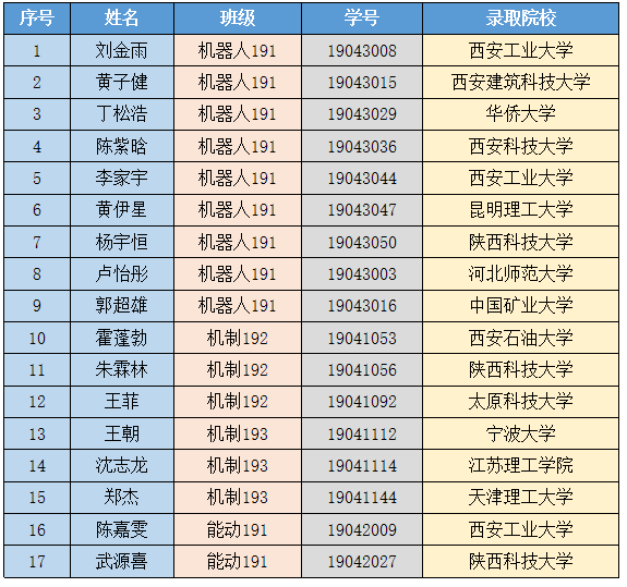 近年来,机械工程系认真落实学院中心工作,以思想引领为先导、以学风建设为抓手、以创新举措为手段、以培养高素质人才为目标,细化责任分工、强化工作落实,凝心聚力助推学生升学就业,考研工作连创佳绩。近日,随着全国各高校2023年硕士研究生拟录取名单陆续公布,机械工程系捷报频传,考研上线人数25人,上线率10.50%,考研拟录取人数17人,录取率7.14%,考研录取率连续两年位居全院第一,显著高于学院平均水平,尤其是机器人191班考研录取率达到21.42%。成绩的取得既是考研学子勤奋笃实、不懈求索、发奋成才的结果,也是机械工程系狠抓学风建设、提升育人质量的体现。