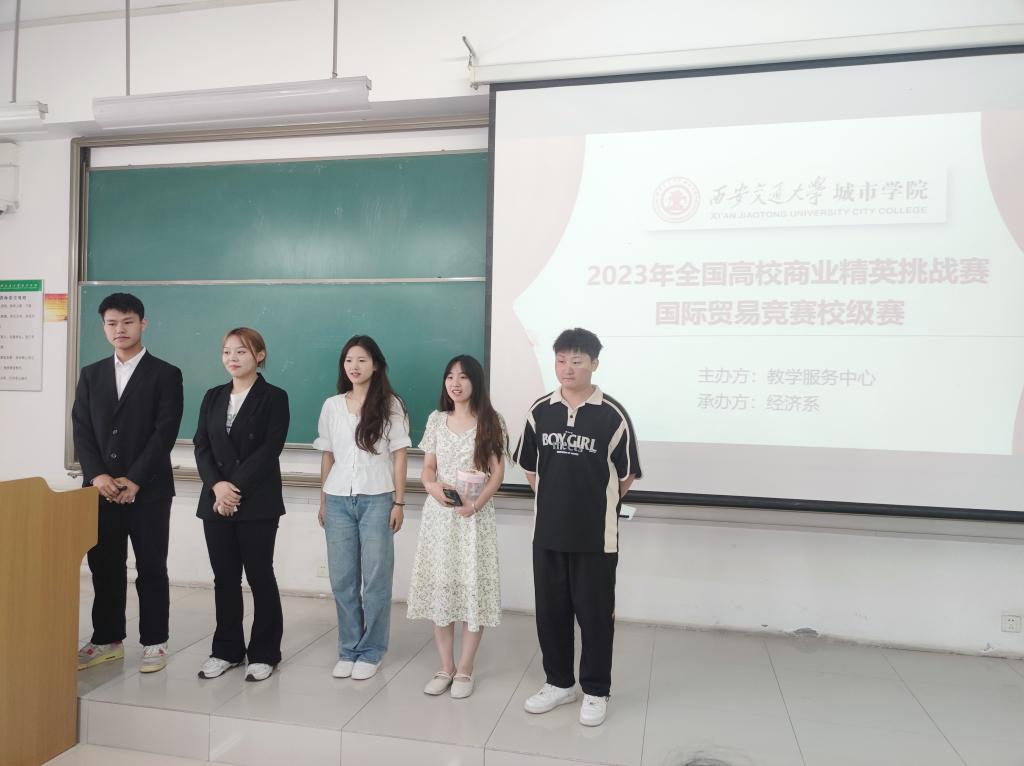 西安交通大学城市学院经济系于6月9日中午在经管楼213教室召开2023年全国高校商业精英挑战赛国家贸易竞赛校级赛。经济系副主任杨健全教授、经济系副主任白丹副教授、经济系学生工作负责人廉宇婷老师及国贸教研室其他评委老师出席本次比赛。