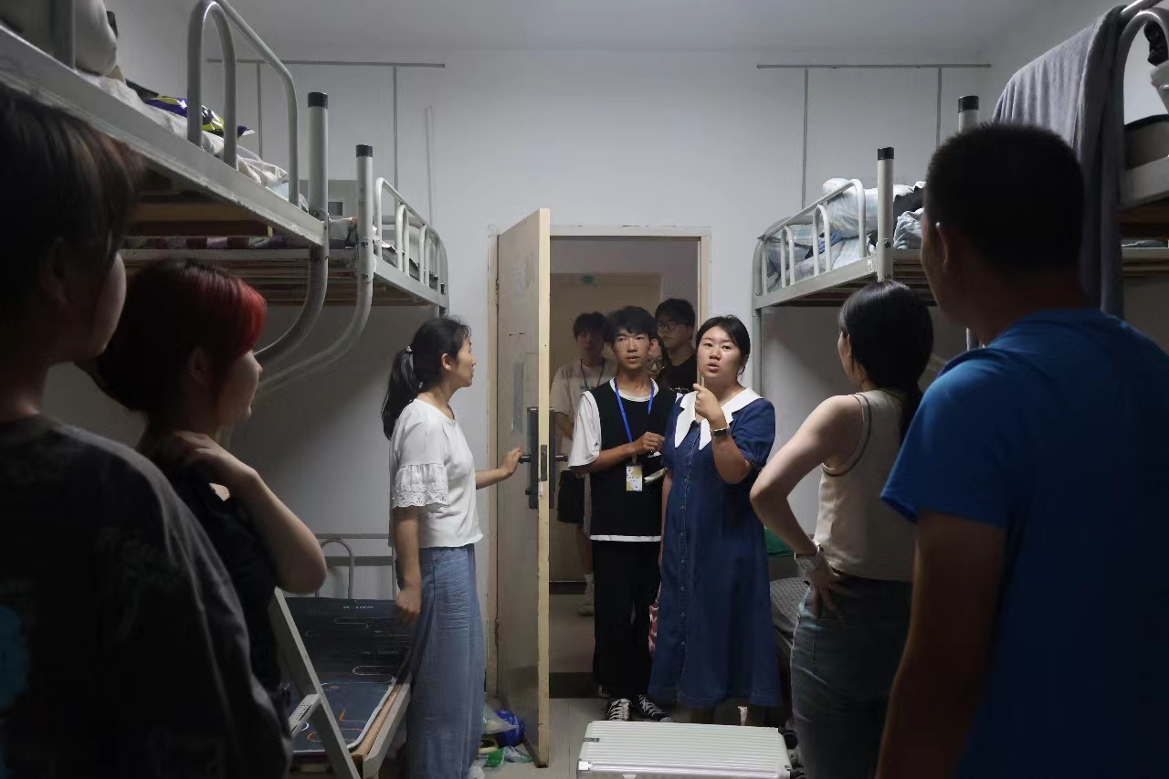 通过走访新生宿舍听取学生心声,进一步了解新生入校后的具体情况以及实际需求,学生党员及学生干部为新生解答疑惑,介绍如何使用校内App以及进行反诈宣传。
