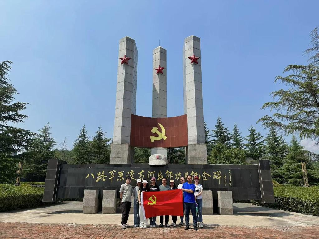 上午,支部首先到达位于韩城芝川的八路军东渡黄河出师抗日纪念园。纪念园包括纪念碑、纪念展厅,是一处集党史教育、爱国主义教育、社会主义核心价值观教育、瞻仰纪念为一体的教育性纪念园。支部党员学习参观后在纪念碑下合影留念。支部书记黄迎老师表示,大家要弘扬革命精神、坚定理想信念,在工作中勇挑重担。