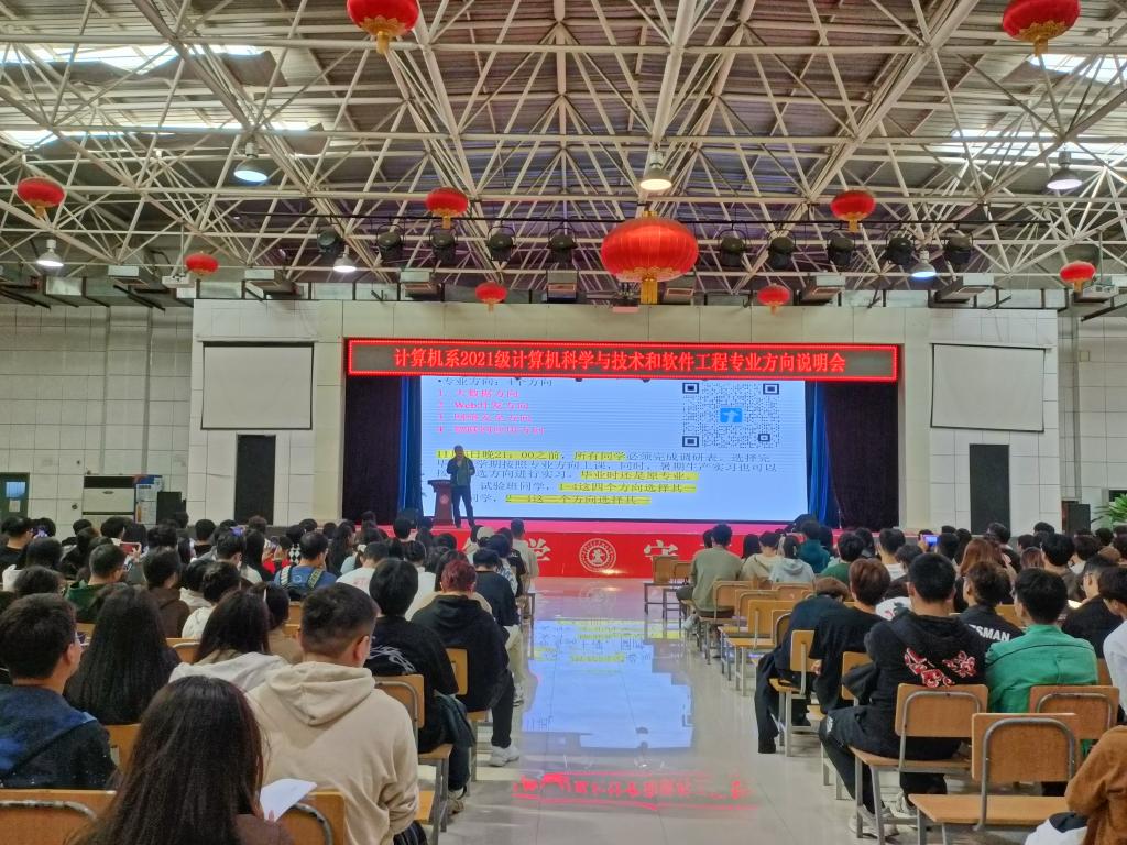 为进一步做好2021级计算机科学与技术、软件工程专业学生对专业方向的认知,提升人才培养质量,引导学生做好职业规划,保障专业方向分流工作高效有序开展,西安交通大学城市学院计算机系于11月2日在大学生活动中心召开2021级计算机科学与技术专业、软件工程专业方向说明会,计算机系副主任许大炜,学生工作负责人崔佳楠以及2021级辅导员出席本次大会,2021级计算机科学与技术和软件工程专业全体同学参加本次大会。大会由许大炜副主任主持。