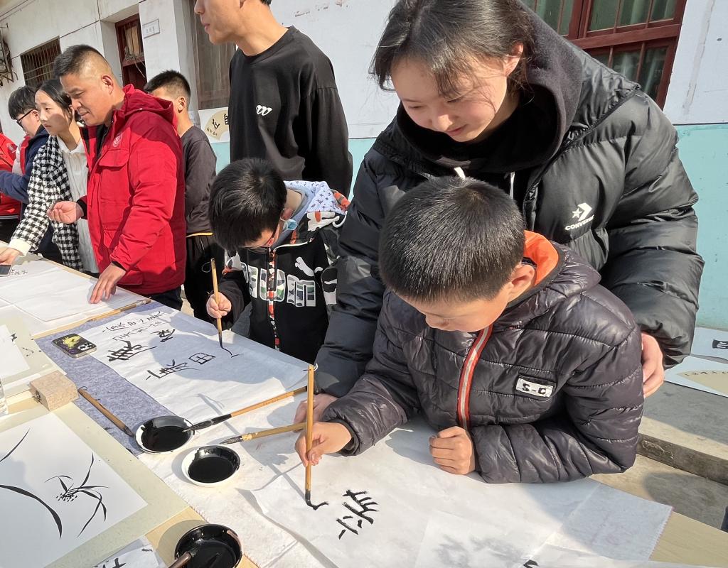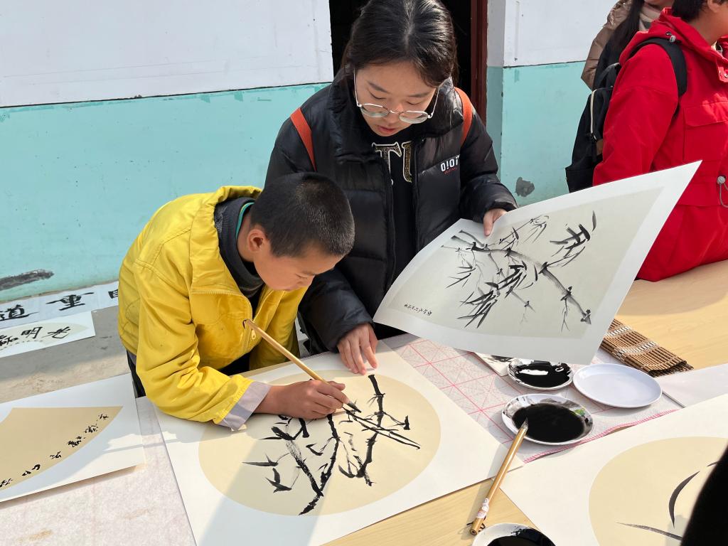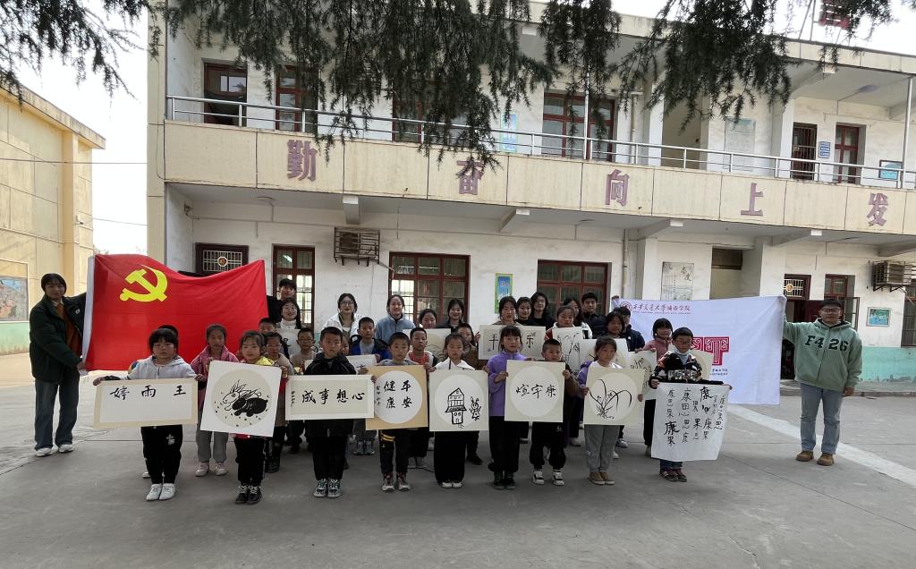 据吴村庙小学李永峰校长介绍,该校共有学生129名。大多数学生的父母均外出务工,留守儿童占比较大,由于条件有限,美术教育极为缺乏。西安交通大学城市学院艺术系师生党员充分发挥专业特色,为孩子们现场进行书法、国画的教学,为孩子们写下励志的标语,送去书画作品。并向该校捐赠部分文体用品,丰富孩子们的课余活动。