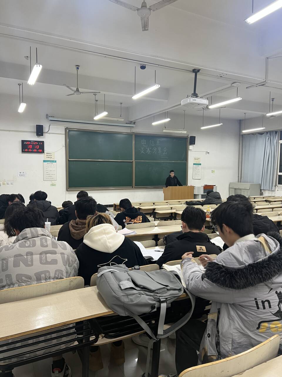 为提高学生参加学科竞赛积极性、主动性,营造良好学风环境。11月27日,电气信息学院面向2022级全体学生组织各班在晚自习教室开展了第十三期博芽讲堂,内容是美国大学生数学建模大赛动员暨经验分享。
