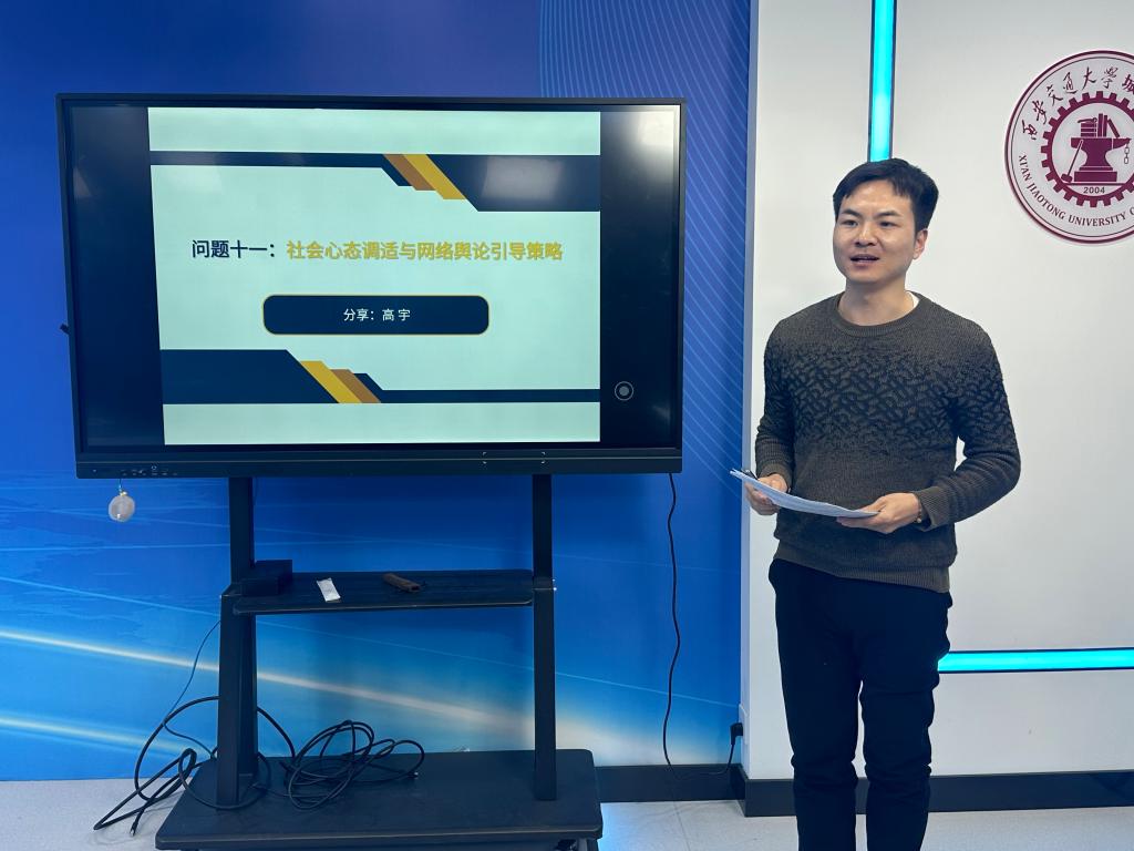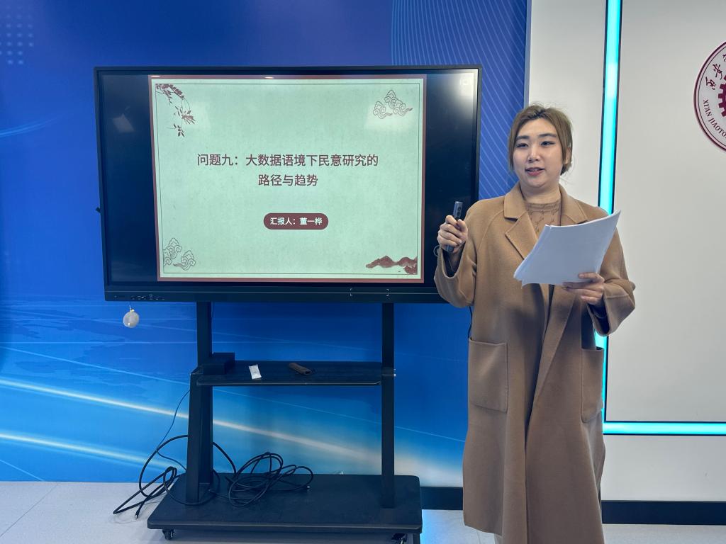 韩树分享了网络舆情热点在新媒体舆论场中总体特征和演变规律;刘青老师介绍了网络舆论中的非理性因素从个体情绪、社会情感和集体意志三个层面;董一桦老师领读了大数据语境下民意研究的路径与趋势。最后,高宇老师讲解了网络舆论引导策略与中国舆论治理的三维框架。