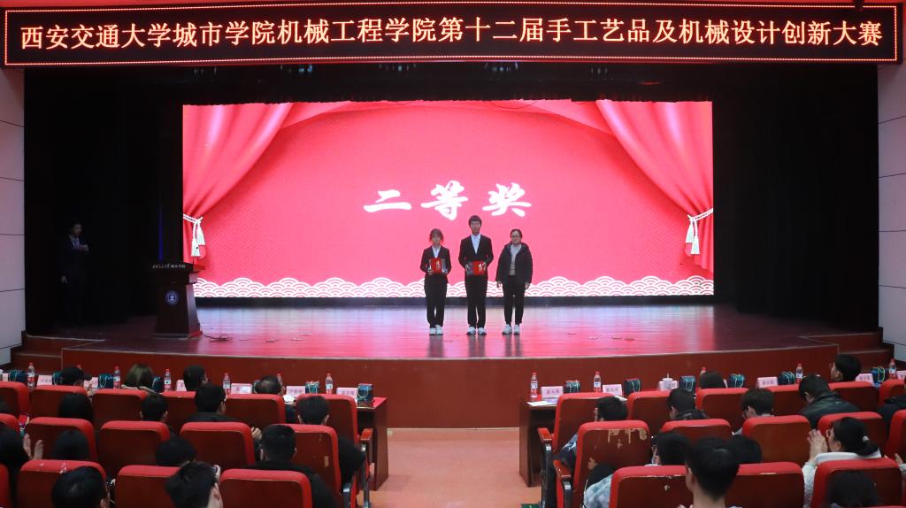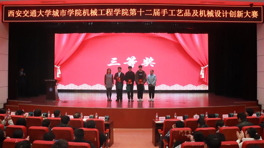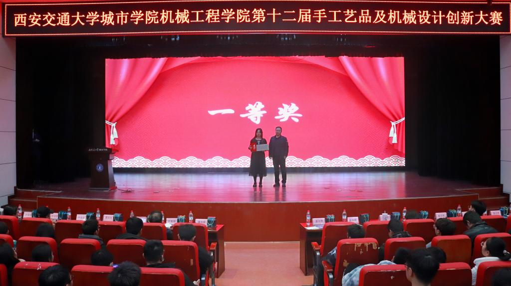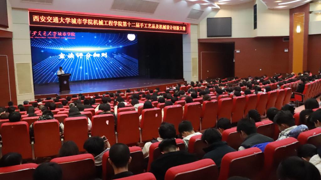 为引导大学生的创新设计意识、加强学生动手能力,提高学生对实际需求的创新思维,西安交通大学城市学院机械工程学院于12月6日在教二报告厅举办了第十二届“慧心巧思,撷取天工”手工艺品及机械设计创新大赛决赛。出席本次比赛的领导和嘉宾有:机械工程学院院长刘吉轩、学生工作处处长辛红伟、学生工作处副处长茹静、机械工程学院教工党支部书记李娜娜、能源与动力工程专业负责人李莉、机器人工程专业负责人樊琛、机械工程学院副教授王小丽、艺术与设计学院教师杨楼生、计算机学院学生工作负责人崔佳楠、外国语学院学生工作负责人吴丹、护理与康复学院学生工作负责人王娇丹、机械工程学院学生工作负责人王丽丽以及各学院团工委书记、辅导员老师们。本次大赛由曹煜励和程闽晴同学主持。