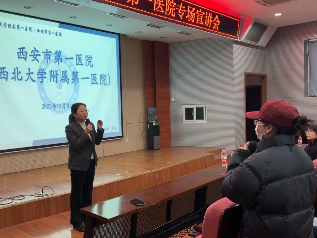 任燕萍主任为同学们讲述了关于学生未来职业发展和培训的信息。西安市第一医院提供了很多学习和培训的机会,帮助学生们不断提升自己的专业技能和综合素质,使学生们更加深入了解了医疗行业的工作环境和职业发展,并给予同学们很多宝贵的意见和建议。