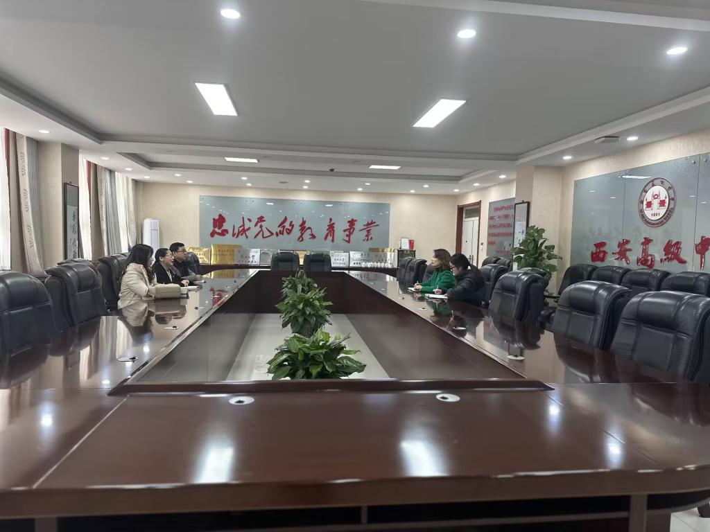 为积极拓宽毕业生就业渠道,搭建毕业生实习平台,12月28日,外国语学院徐素云副院长、英语系丁媛主任及袁长普副主任一行三人到西安高级中学开展“访企拓岗”活动,与该校焦捷副校长及我校英语专业校友桑敏纳进行交流。