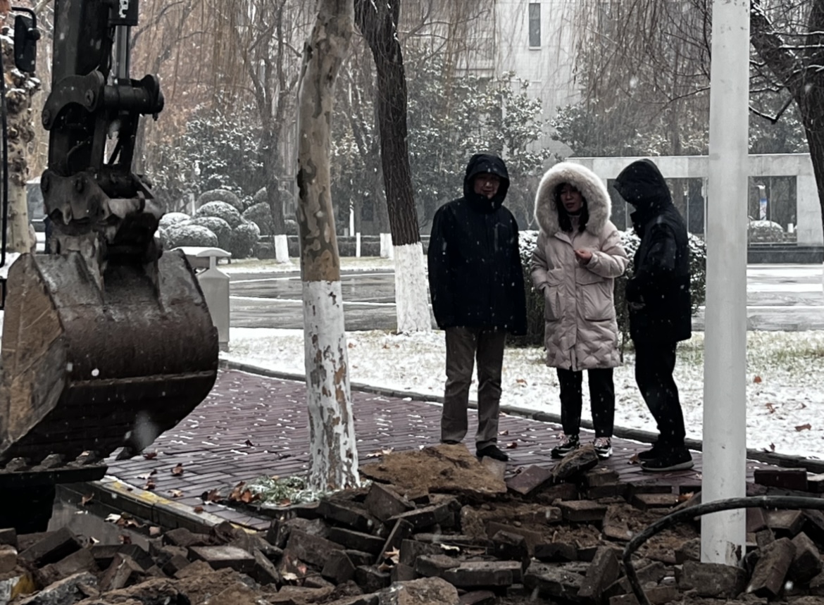 维修改造如期开工。根据学校工作安排,人行道维修工程今天迎着风雪正式开工,寒假期间维修工程将持续进行。同时学院节水改造项目、教二北广场绿化工程也将在寒假如期开展。