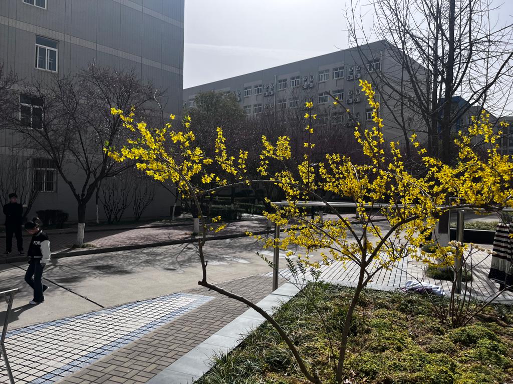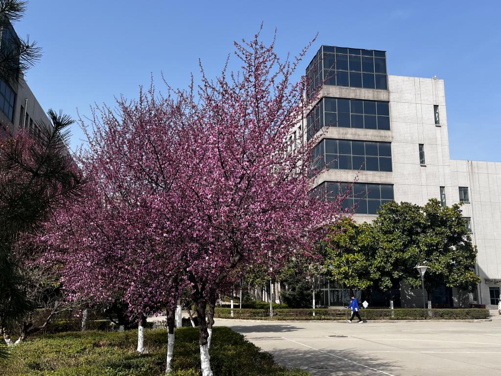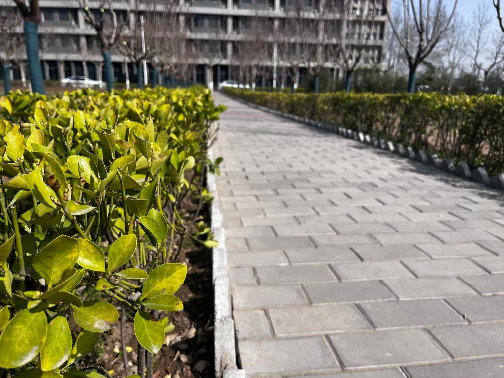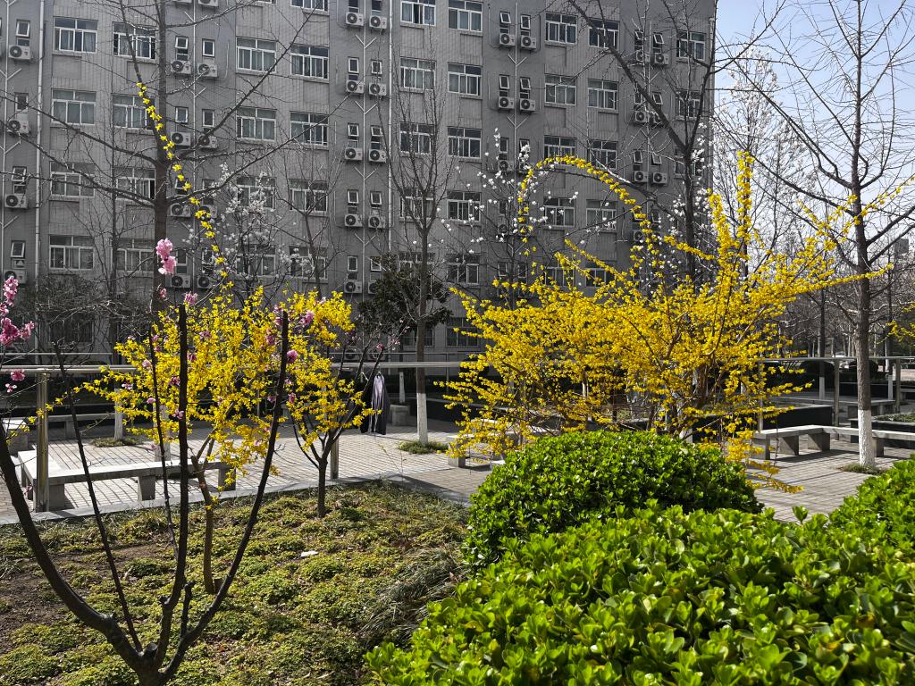 正值春分,千花百卉争明媚。后勤处在学校安排下,经过近半年的提前筹谋、准备,教二楼北广场各类植物已吐枝发芽,学校各处也已春意盎然。