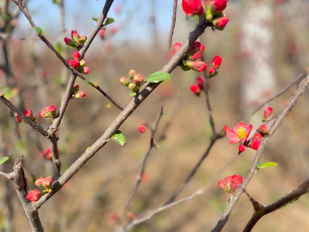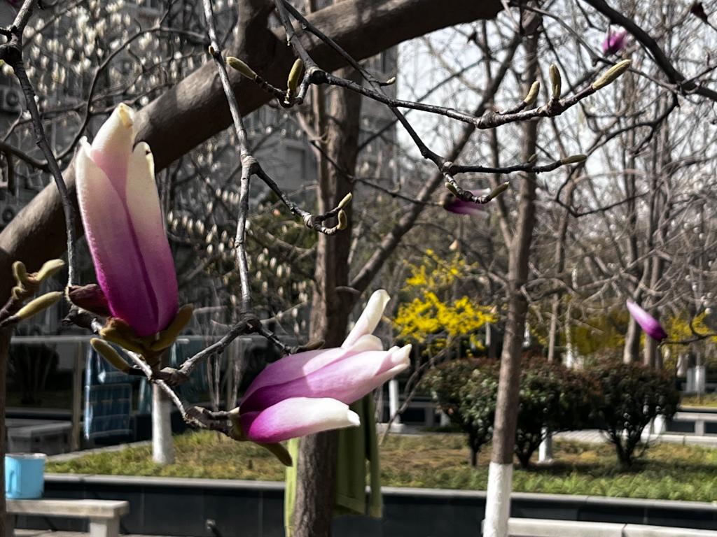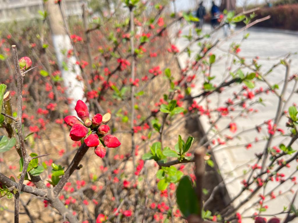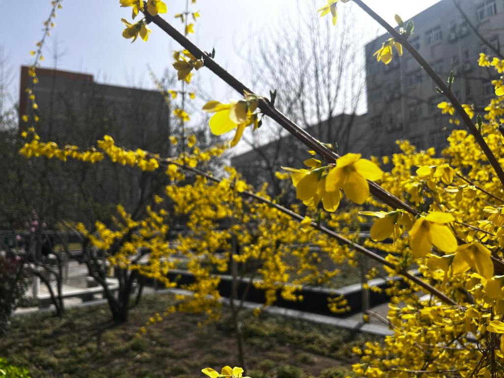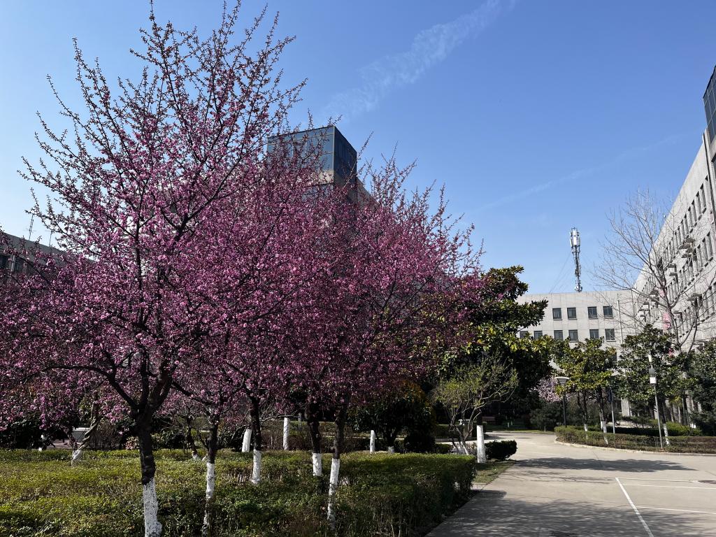正值春分,千花百卉争明媚。后勤处在学校安排下,经过近半年的提前筹谋、准备,教二楼北广场各类植物已吐枝发芽,学校各处也已春意盎然。