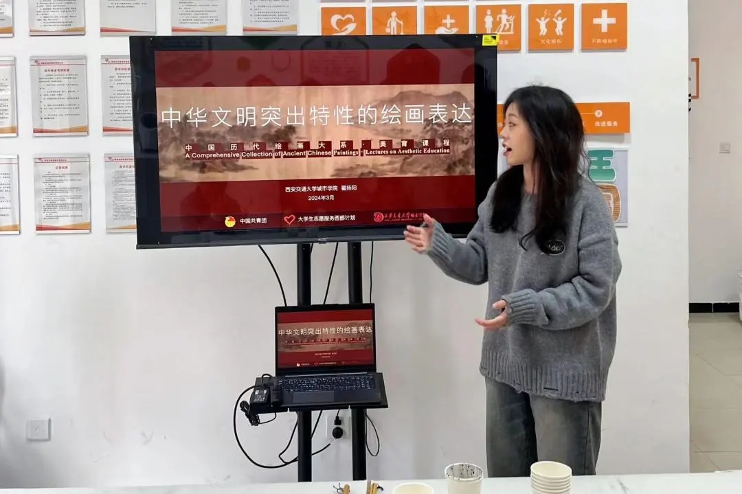 艺术与设计学院艺愿志愿队在紫薇希望城社区开设中国历代绘画大系宣讲活动。