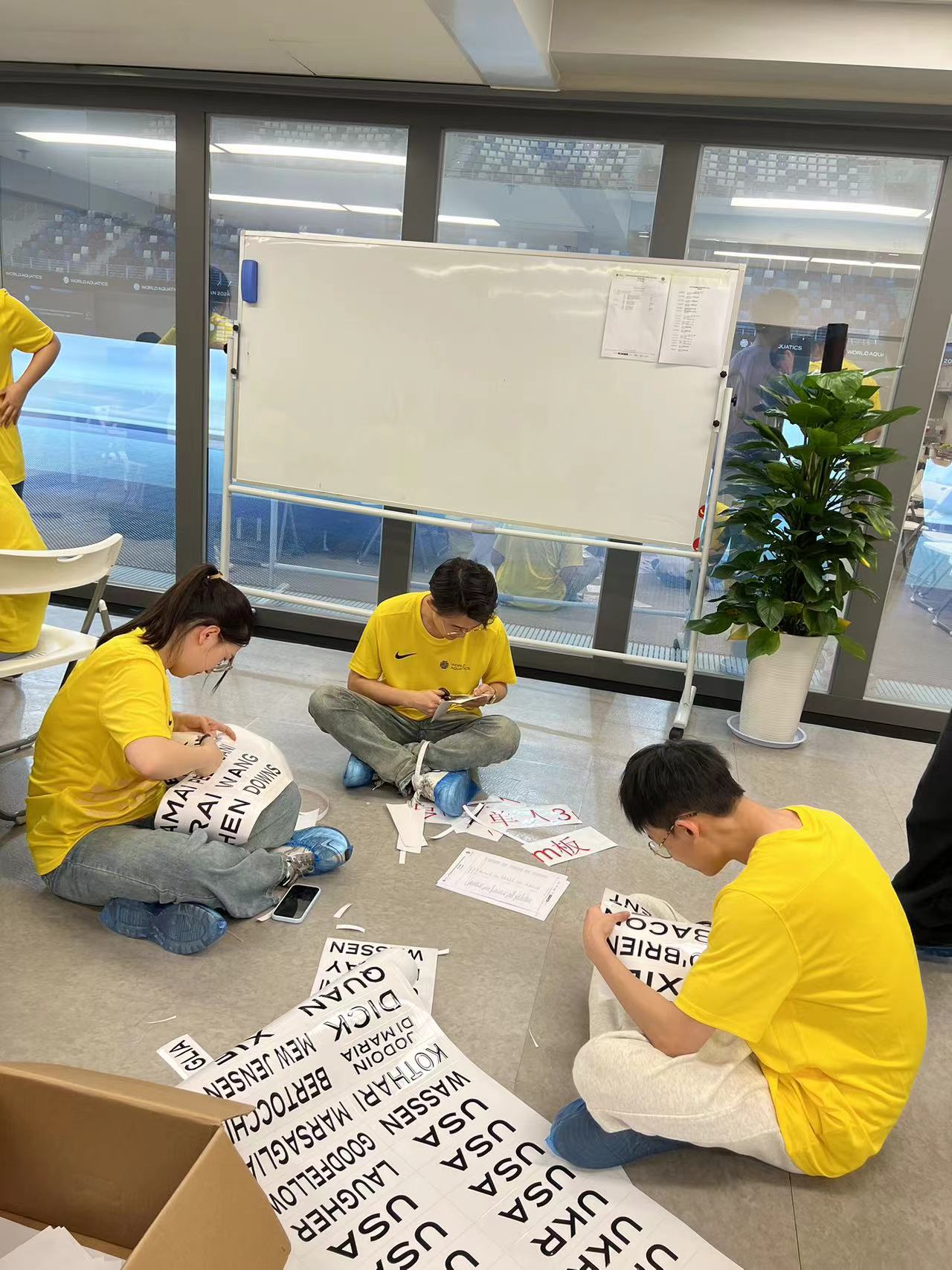 在偌大的奥体中心随处可见我校志愿者忙碌的身影,他们身着靓丽的黄色T恤,亲切地被大家称呼为“小黄人”。志愿者们随时守候,他们将坚守、奉献与热情的脚步印在西安奥体中心的每个角落。