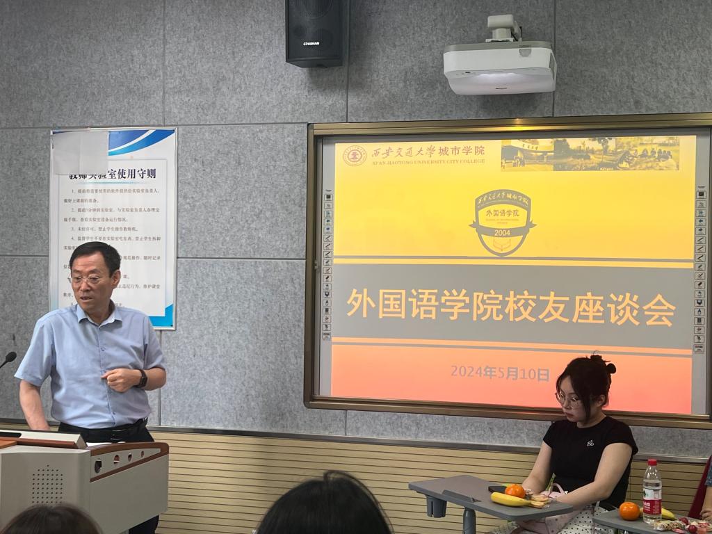 5月10日下午,外国语学院在B304召开校友交流座谈会,师生、校友代表欢聚一堂,畅叙情谊,共谋发展。院长郭继荣、副院长徐素云、院长助理吴夫迎、英语系主任丁媛、副主任袁长普、院办主任关天骄、学生工作负责人吴丹出席座谈会,会议由团工委书记韩蓉主持。