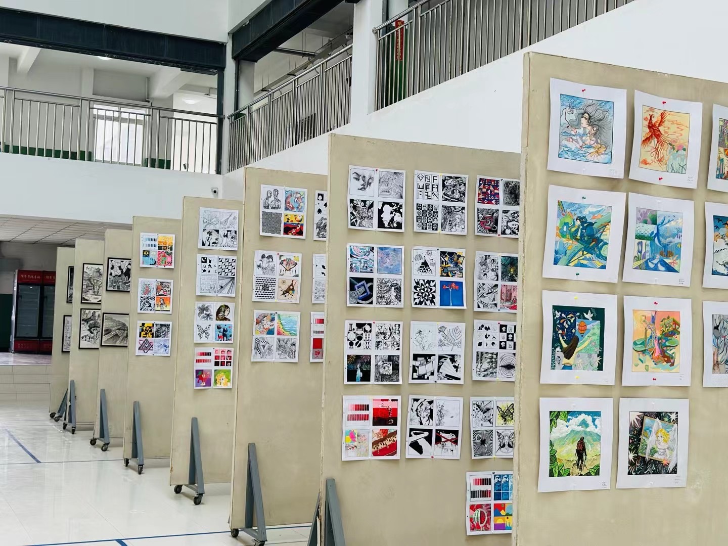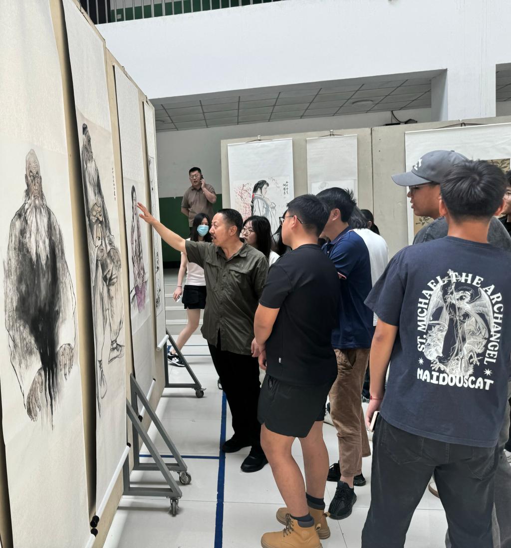 展览汇聚了艺术与设计学院所有学科学生的众多优秀作品,涵盖了中国画、书法、视觉传达设计、环境设计、动画五个艺术领域的作品。这些作品风格各异,有的充满创意与想象力,以独特的视角展现世界;有的细腻入微,传达出深刻的情感和思考。每一件作品都凝聚着学生们的心血和对艺术的执着追求。展览现场,校内师生们穿梭于各个展区,仔细品味着每一件作品。同时,学院还组织专业教师现场点评,深入解读作品的内涵和创作理念。