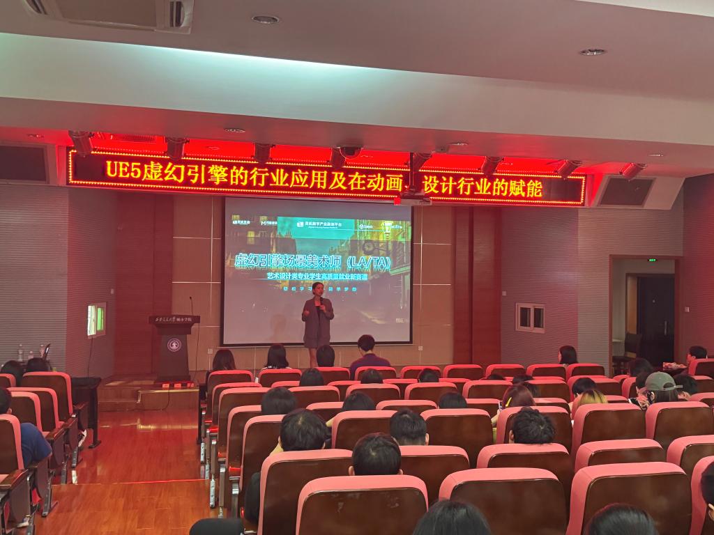 近日,艺术与设计学院举办“职业前沿大讲堂”系列活动,大讲堂聚焦了UE5虚幻引擎在设计行业的赋能作用,为艺术与设计学院的师生带来了一场关于前沿技术与设计创新的深度交流。