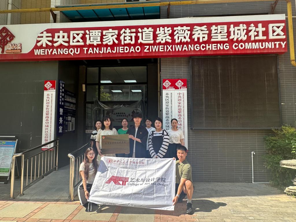 为提升志愿服务水平,加强大学生的社会实践能力,5月22日下午,艺术与设计学院大学生社会实践基地授牌仪式在西安市未央区谭家街道紫薇希望城社区举行,紫薇希望城社区党支部书记谭梅,艺术与设计学院团工委书记刘牧原,辅导员常娉婷,学生党支部,艺愿志愿队部分代表共同参加本次活动。