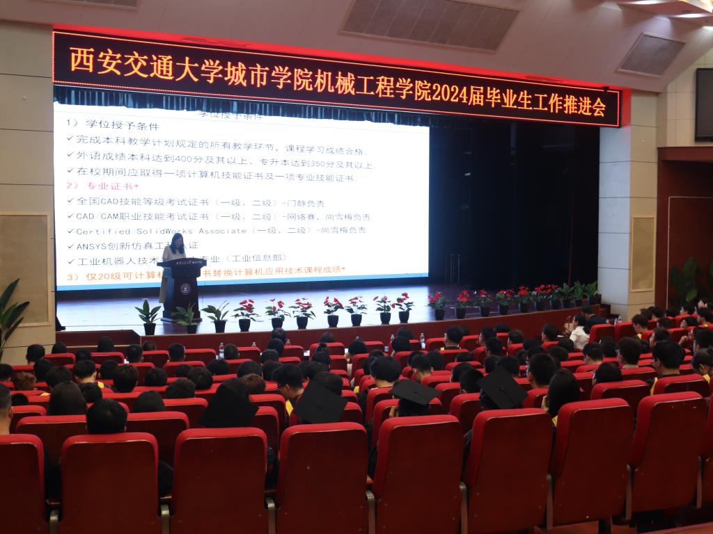 为进一步梳理毕业相关问题,加快推进学院2024届毕业生就业进展,机械工程学院于5月28日在教二报告厅召开了2024届毕业生工作推进会。机械工程学院院长刘吉轩、教工党支部书记兼机械工程及自动化系主任李娜娜、机械电子工程系主任樊琛、院长助理门静、办公室主任李华、实验中心负责人张伟、全体毕设指导老师、各班班主任、全体辅导员及2024届全体毕业生参加本次大会。大会由院长助理王丽丽主持。