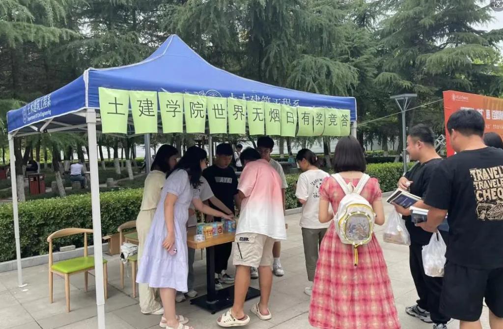 为更好地普及控烟戒烟知识,提高同学们对吸烟危害的认识,保障同学们的身体健康,土木建筑工程学院于5月31日中午在中快广场举办了“世界无烟日”知识竞答活动。