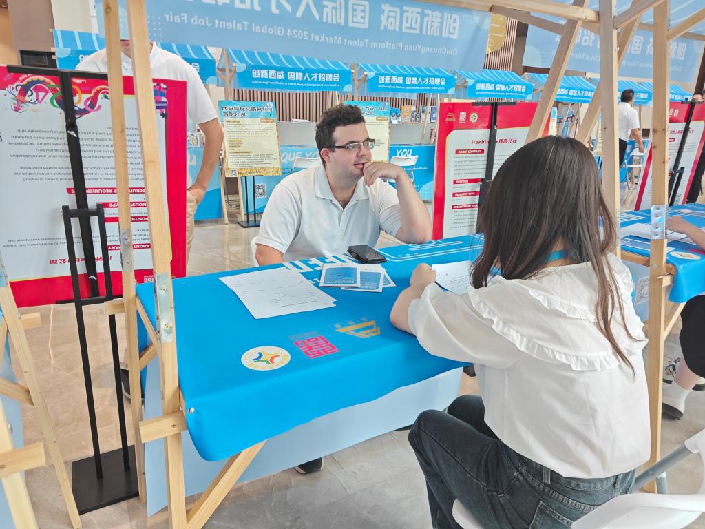 本次招聘会旨在推动国际人才在西安市场充分就业,外国语学院利用专业优势,组织学生深入招聘会现场开展社会实践活动,承担英文翻译、引导协助工作。同学们扎实的专业知识、积极主动的态度赢得了主办单位的认可和赞扬,展示了外语学子的专业素养。本次求职体验日活动给英语专业的学生提供了一次宝贵的实战经验,有效提升了学生的翻译技能和综合素质,更对翻译工作在职场中的应用有了更深刻的认识。