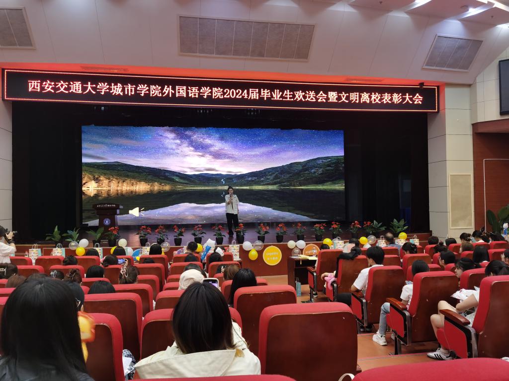 5月31日,外国语学院在教二报告厅召开2024届毕业生们欢送会。外国语学院领导、教师代表以及所有毕业生齐聚一堂,共同见证了这难忘的时刻。