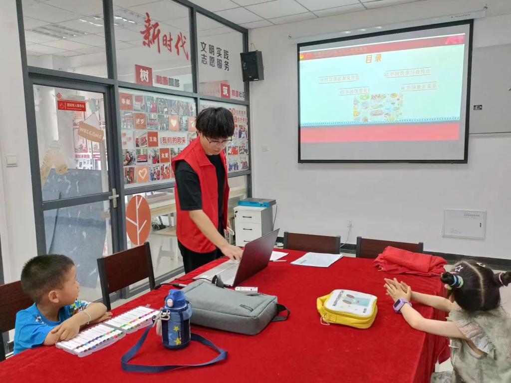 活动现场,中国历代绘画大系大学生宣讲团成员环境2302惠闵帅为小朋友们讲述了中国传统美食历史发展和寓意,随后,小朋友们在志愿者们的帮助下在画纸上勾勒着各种美食的形状和色彩。有的画出了热气腾腾的小笼包,有的描绘了色香味俱佳的红烧肉,还有的小朋友画出了自家祖传的秘制小吃。每一幅画作都是对家乡味道的独特解读,也是对传统文化的一次传承。