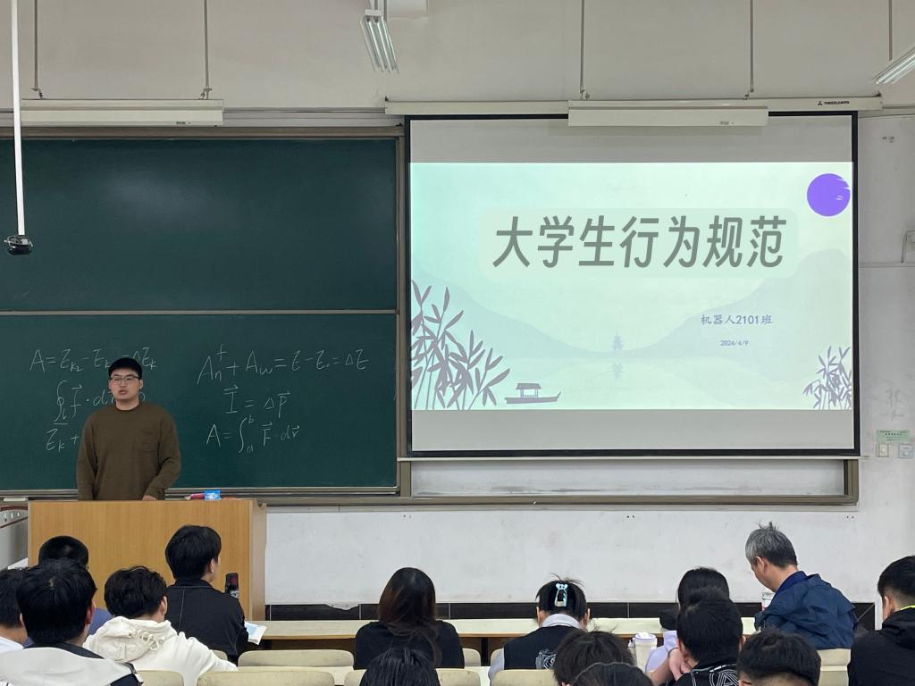 人无礼则不生,事无礼则不成,国无礼则不守。机械工程学院开展以校园文明礼仪、行为规范管理为主题的班会、辅导员带领学生学习《学生手册》(2023年修订)和《普通高校学生行为准则》、设立行为规范督查小组等形式全面促进学生养成文明习惯,创设校园良好的育人环境,使学生的整体素质全面提高,进而形成良好的校风,让文明礼仪永驻在学生的心中和行动中。