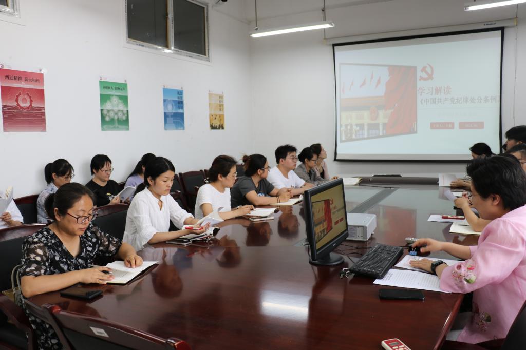 6月28日下午,管理学院教工党支部在教2-225会议室开展支部书记讲党课活动,党支部书记王旭以学习解读《中国共产党纪律处分条例》为主题讲授党纪学习教育专题党课。