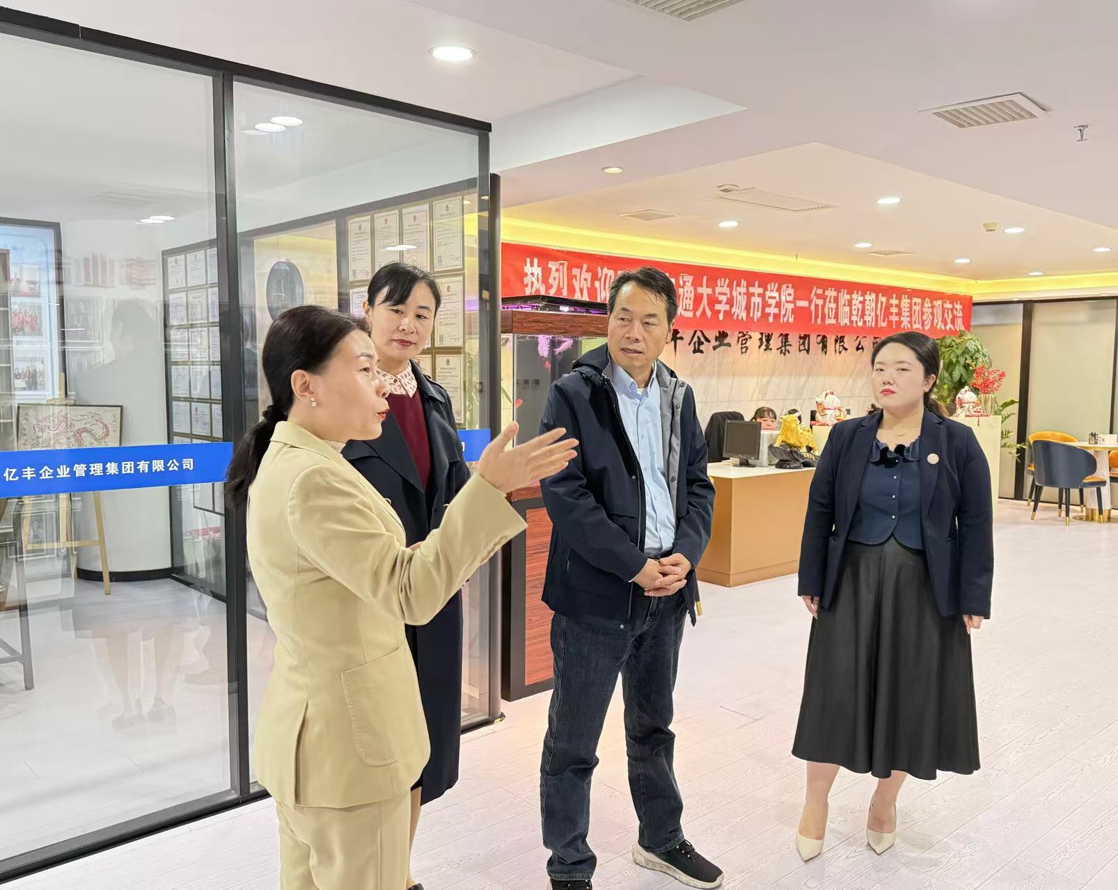 为全面深化校企合作,进一步扎实推进“访企拓岗促就业”专项行动,管理学院于10月23日赴陕西乾朝亿丰企业管理集团有限公司进行交流活动。此次活动由管理学院常务副院长郭关科带队,院长助理刘健、辅导员拓桦真一同前往。