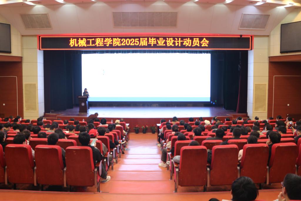11月18日,机械工程学院在教二报告厅召开2025届毕业设计动员会。机械学院院长刘吉轩、副院长王国平,机械工程及自动化系主任李娜娜、能源与动力工程系主任李莉、机械电子工程系主任樊琛,院长助理门静、王丽丽及全体指导老师,院办公室赵瑾、毕业班辅导员及全体25届学生参加会议。会议由王国平老师主持。
