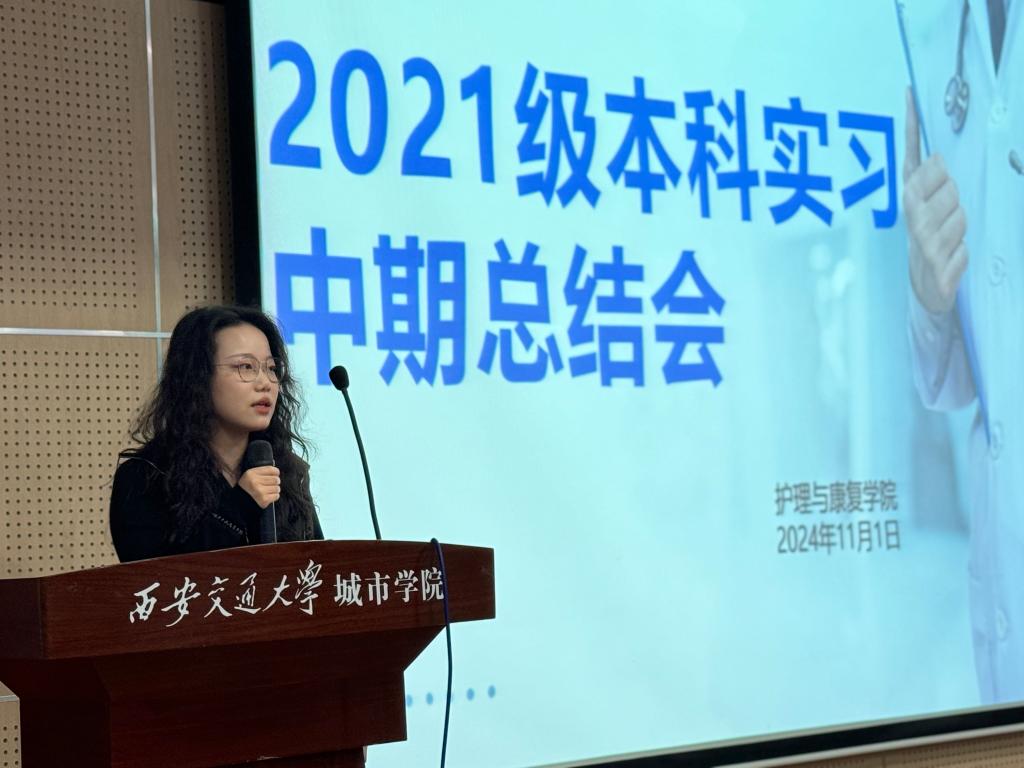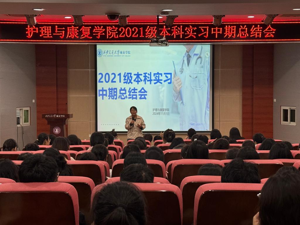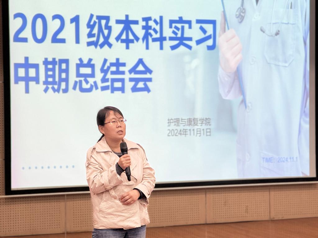 为进一步了解护理与康复学院学生临床实习情况,提高专业实习质量,护理与康复学院于11月1日在教学楼F100召开2021级本科生实习中期总结会。本次会议由护理与康复学院院长助理李楠主持,护理与康复学院无教学任务的老师及21级全体实习生参加。