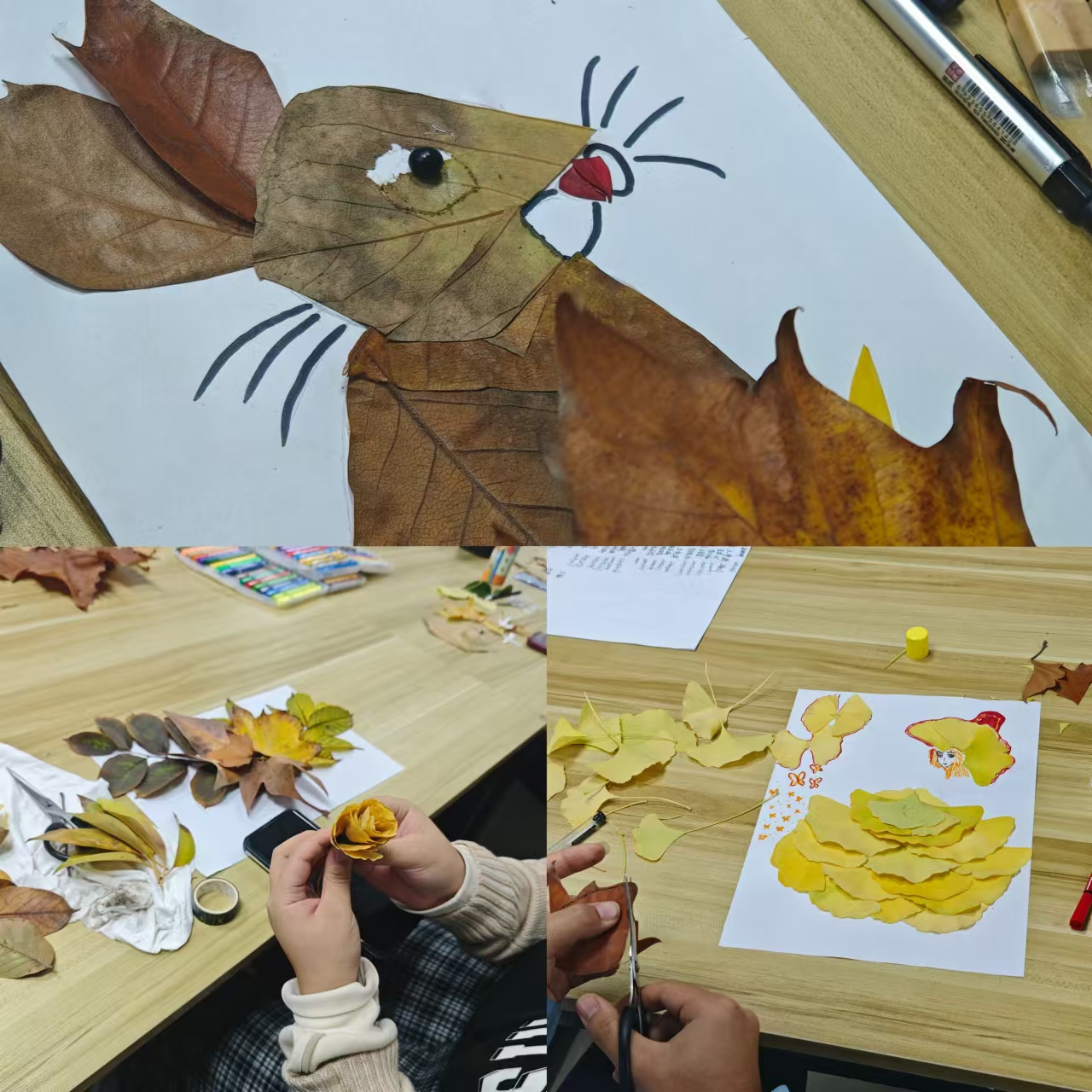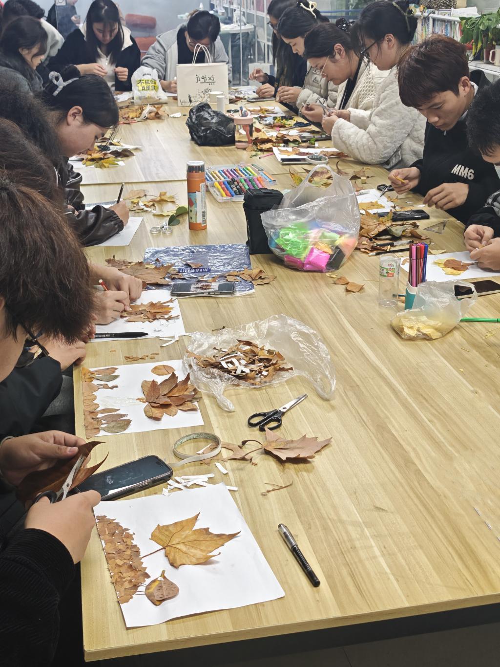 活动之初,参加活动的同学们在校园中收集树叶,在寻找作画材料的同时真正贴近大自然,感受秋天的独特韵味,大自然的宁静与美丽能够激发学生内心的积极情绪。随后,他们运用自己的想象力和创造力,将一片片落叶变成了一幅幅精美的作品。在这个过程中,学生们能够更好地理解自己的内心世界,提高自我认知和情绪管理能力。