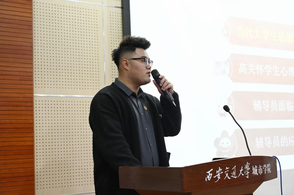 机械工程学院童治杰以“当代大学生思想行为特征与心理发展规律及辅导员应对策略”为主题展开分享。他通过详实的数据和生动的案例,深入剖析当代大学生价值观多元且迷茫的现状。详细阐述了高关怀学生群体的特征,分析他们在心理健康教育中的难点,为辅导员更好地理解和引导学生提供了重要参考。