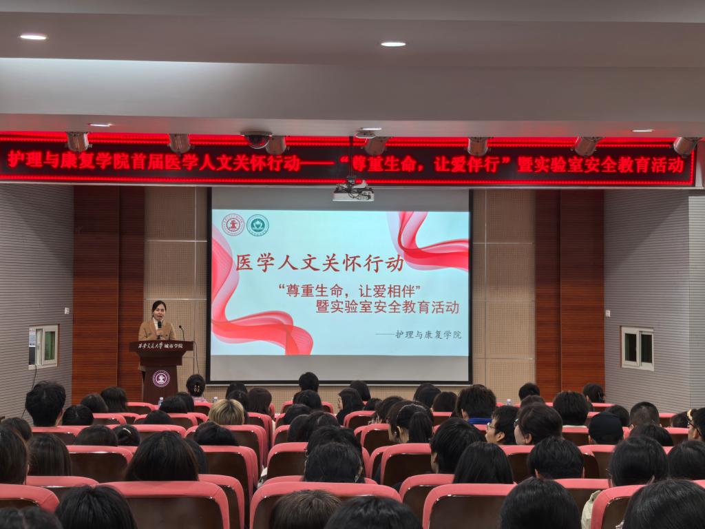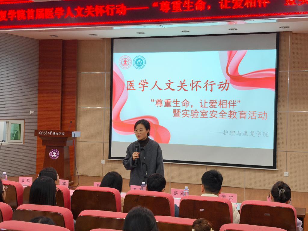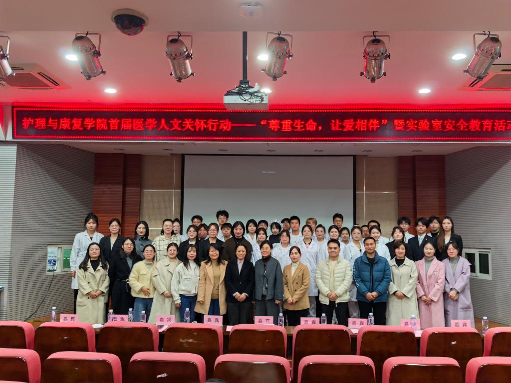 11月22日,护理与康复学院特于11月22日在F100报告厅举行首届医学人文关怀行动——“尊重生命,让爱相伴”暨实验室安全教育活动。