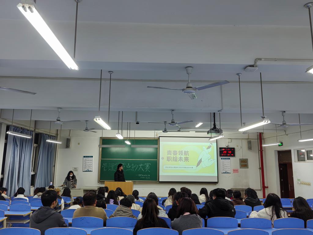 管理学院职业规划大赛决赛于12月3日晚在F100报告厅举办。此次大赛的评委有院长助理刘健,管理学院学生第二党支部书记李璐,团工委书记柯智航,学生科全体辅导员。贺静雨担任主持人。